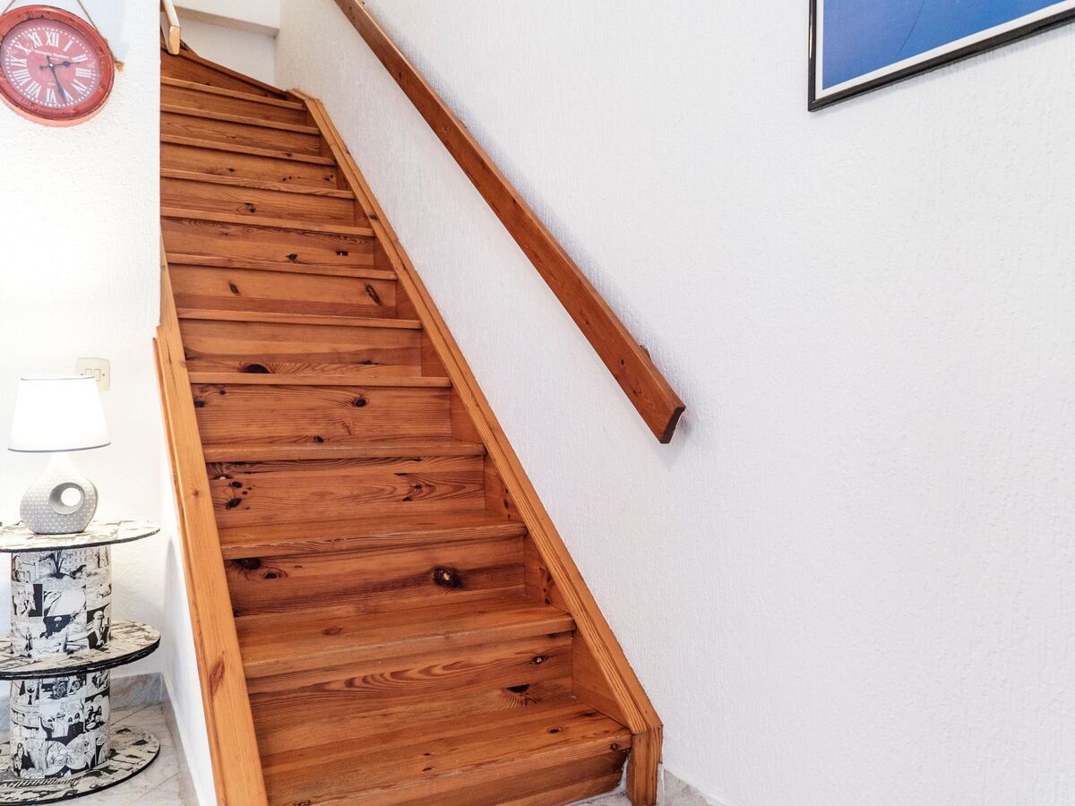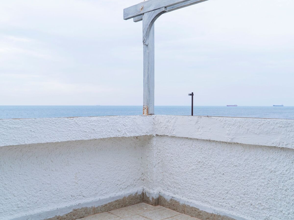 On the ground floor, a spacious living room with sea view and fireplace invites you to relax, flanked by a fully equipped open kitchen and a service bathroom.