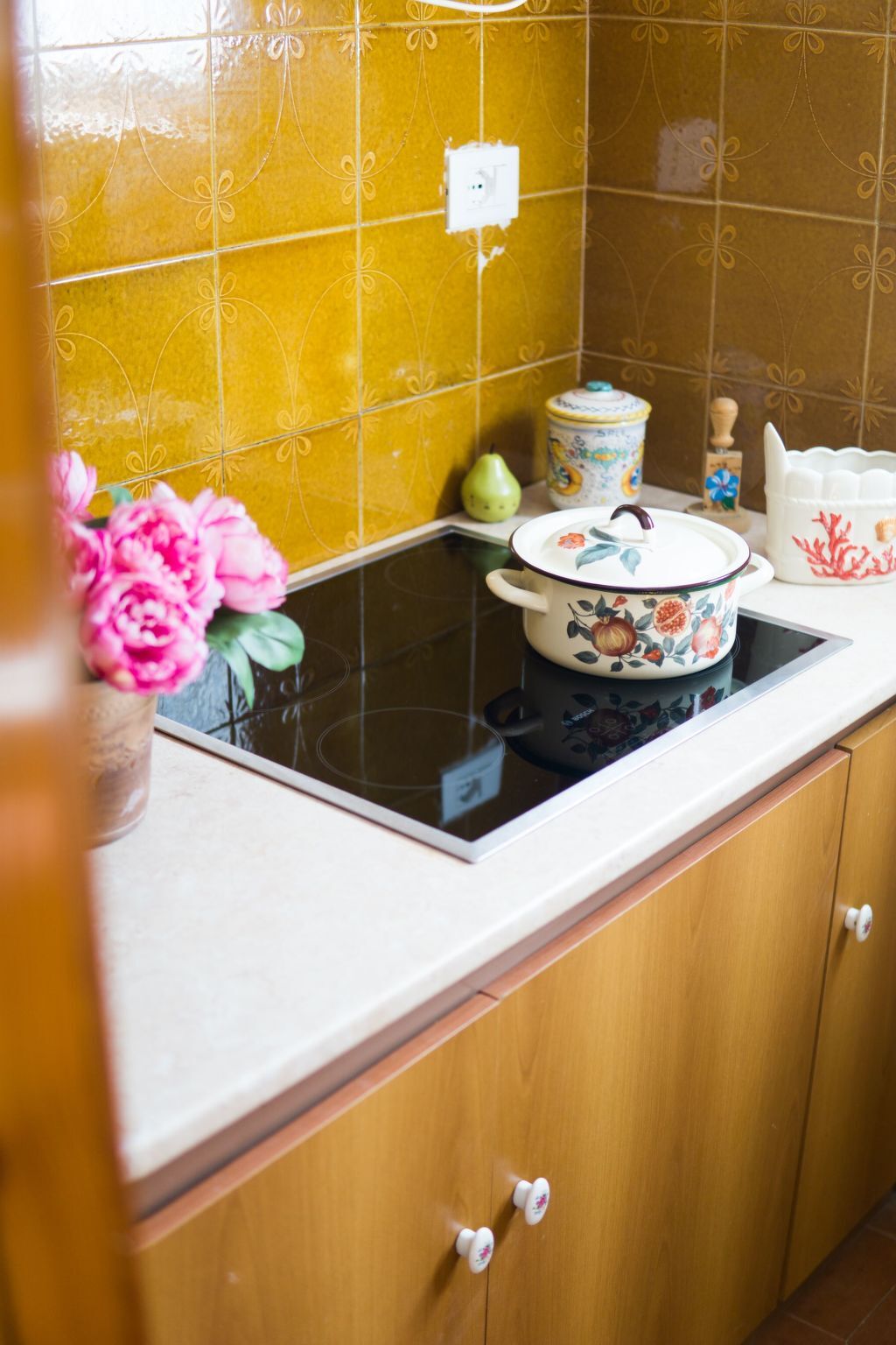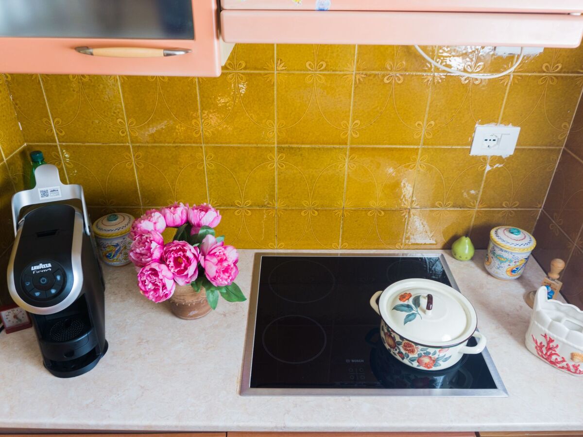 The kitchen is fully equipped with a dishwasher, refrigerator, microwave, 4-burner ceramic hob, pots, dishes, glasses, cutlery and a variety of utensils.