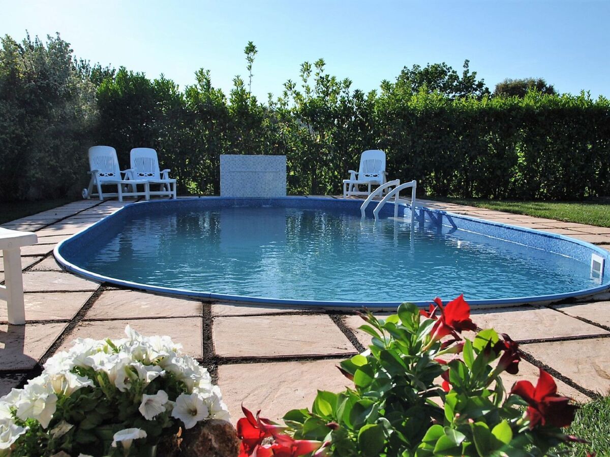 The outdoor swimming pool is equipped with a salt purification system