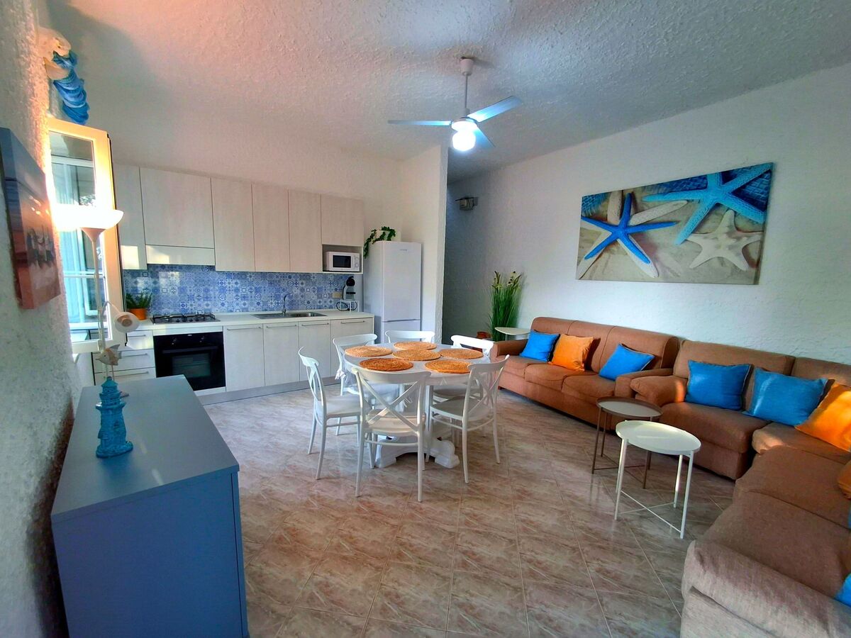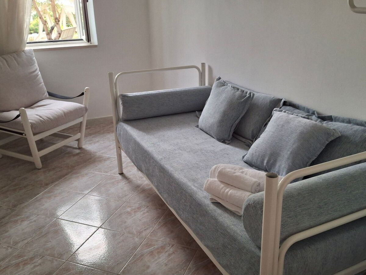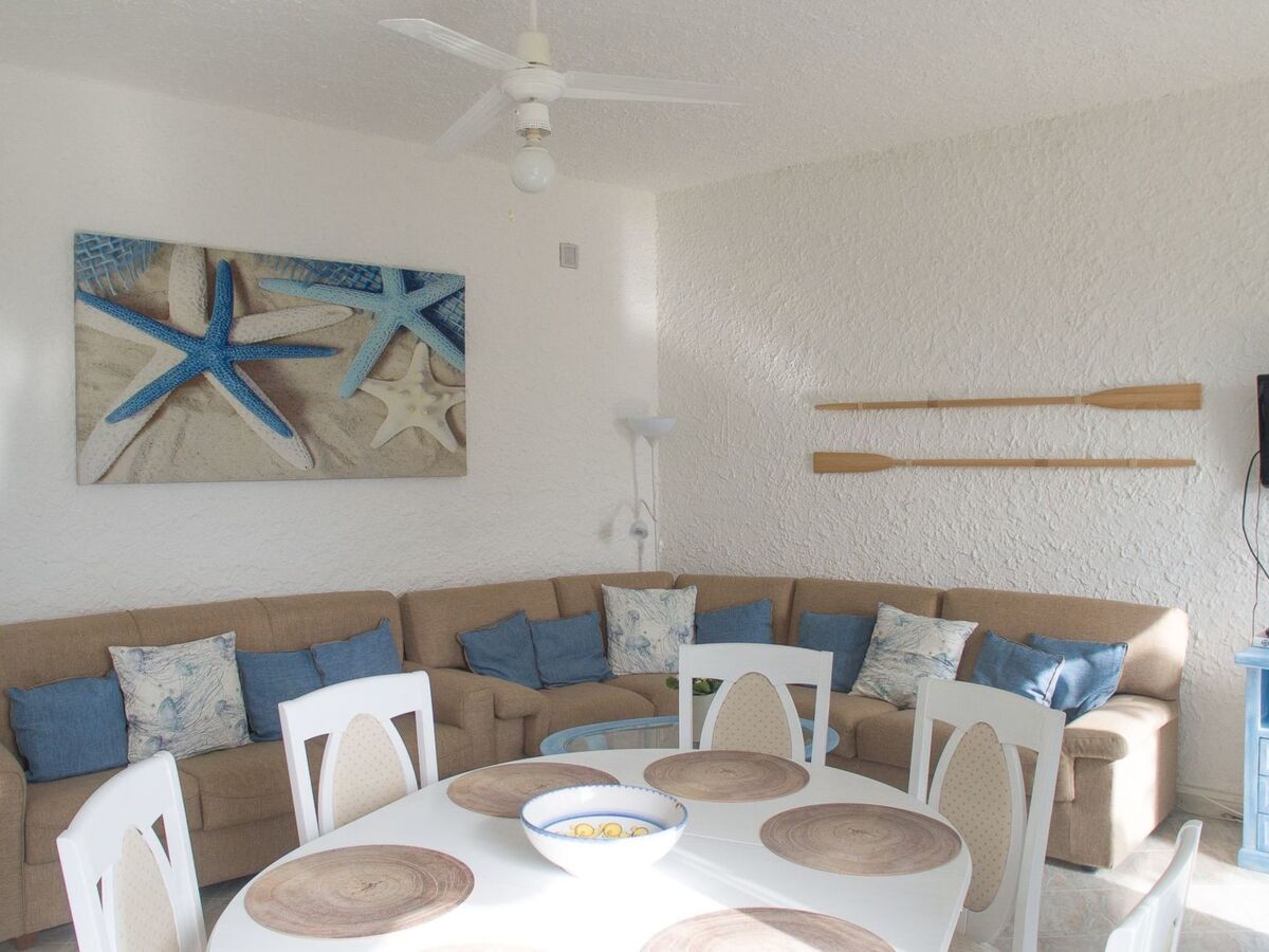 From the large living room with sofa, covered with soft cushions, one can see the sea.
