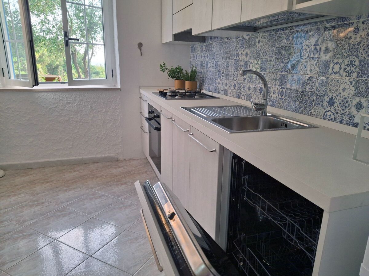 The fully equipped kitchen is equipped with oven, fridge and dishwasher.