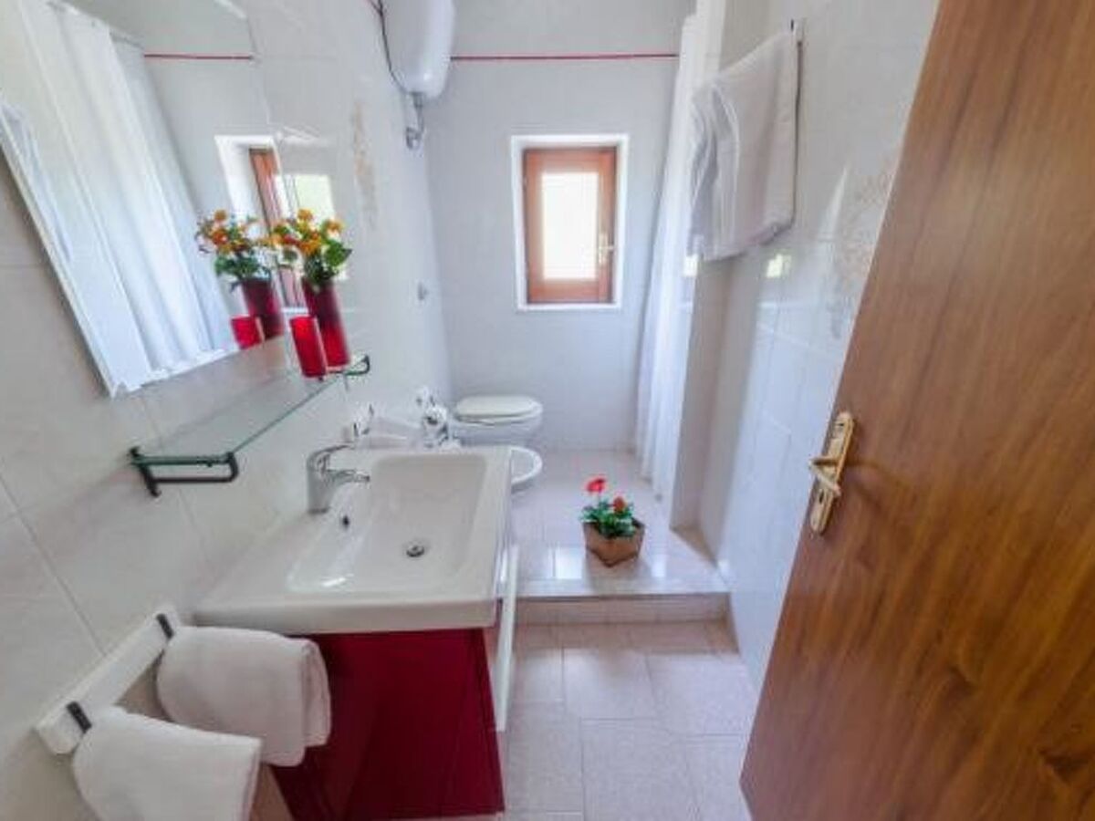 L'flat overlooks a well-kept garden full of greenery and flowers where there is a gazebo, deckchairs and outdoor showers.