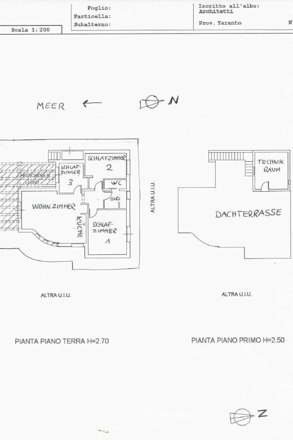 From the tiled terrace around the house, which offers plenty of shady space for eating and relaxing, a wide staircase leads up to the large roof terrace, from which you have a magnificent 180-degree view of the sea and the surrounding area.