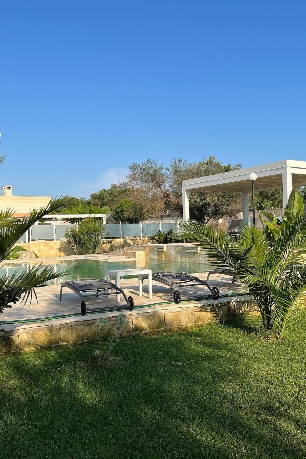 The Villa sits on more than 1,5 acres of a private fenced land immersed in the quiet and silent countryside near Manduria while only few minutes away from the Apulian crystal-clear sea and to the city center of Manduria, the capital of Primitivo wine.