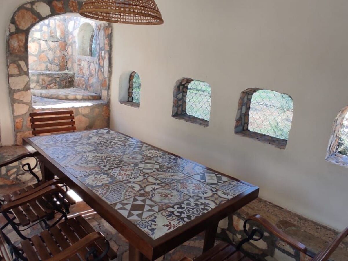 For moments of conviviality, the living room has a fireplace, while a fan ensures coolness during the hottest days.