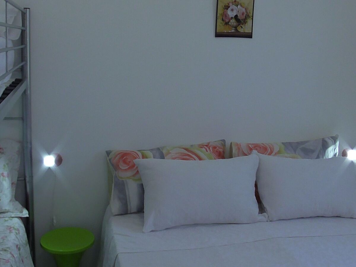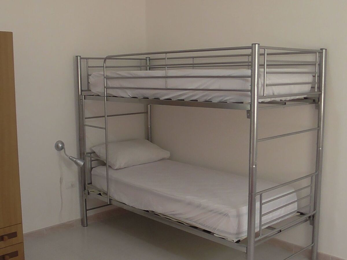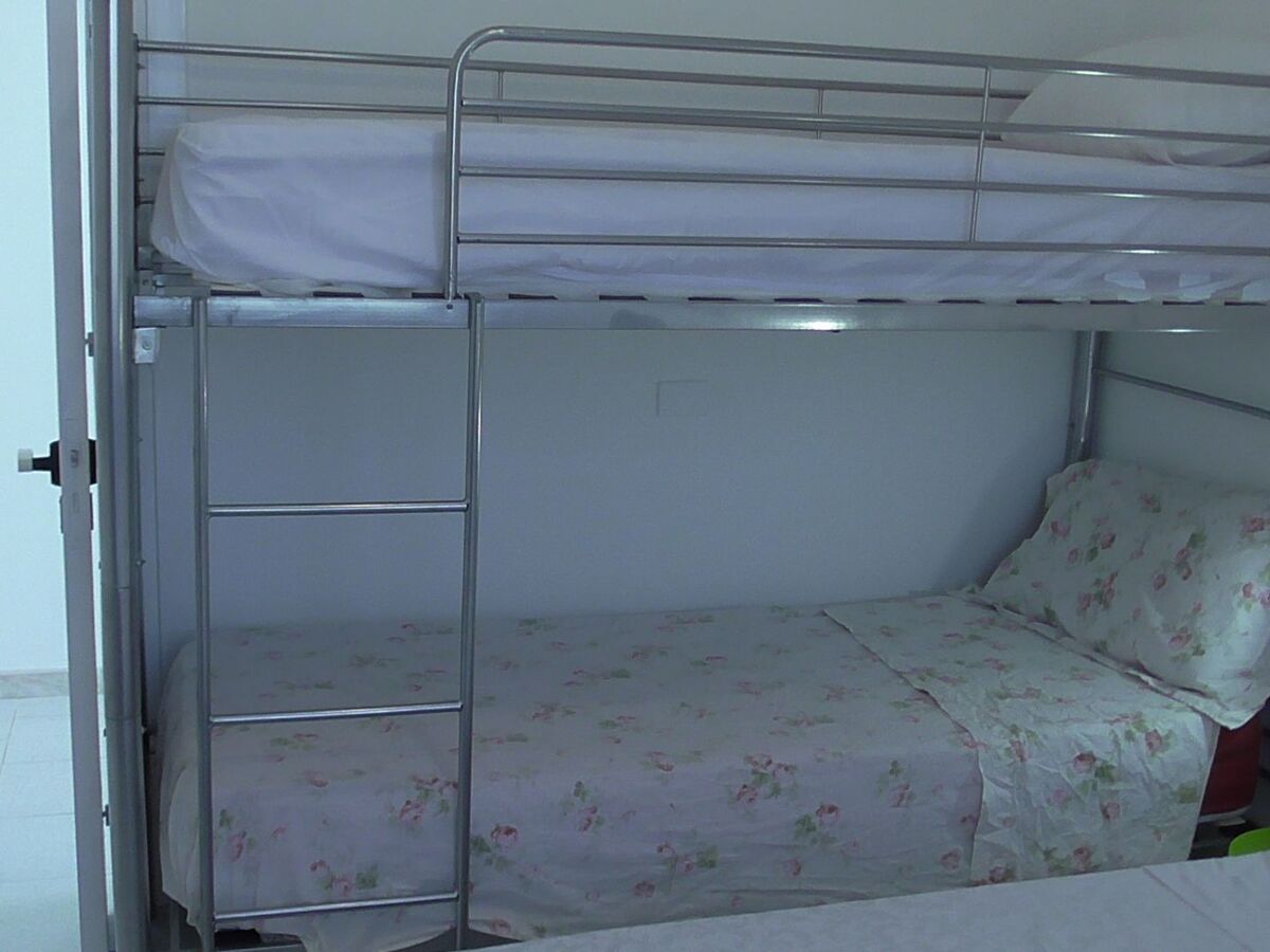 The accommodation consists of a living room with TV and two bedrooms with a double bed and a bunk bed.