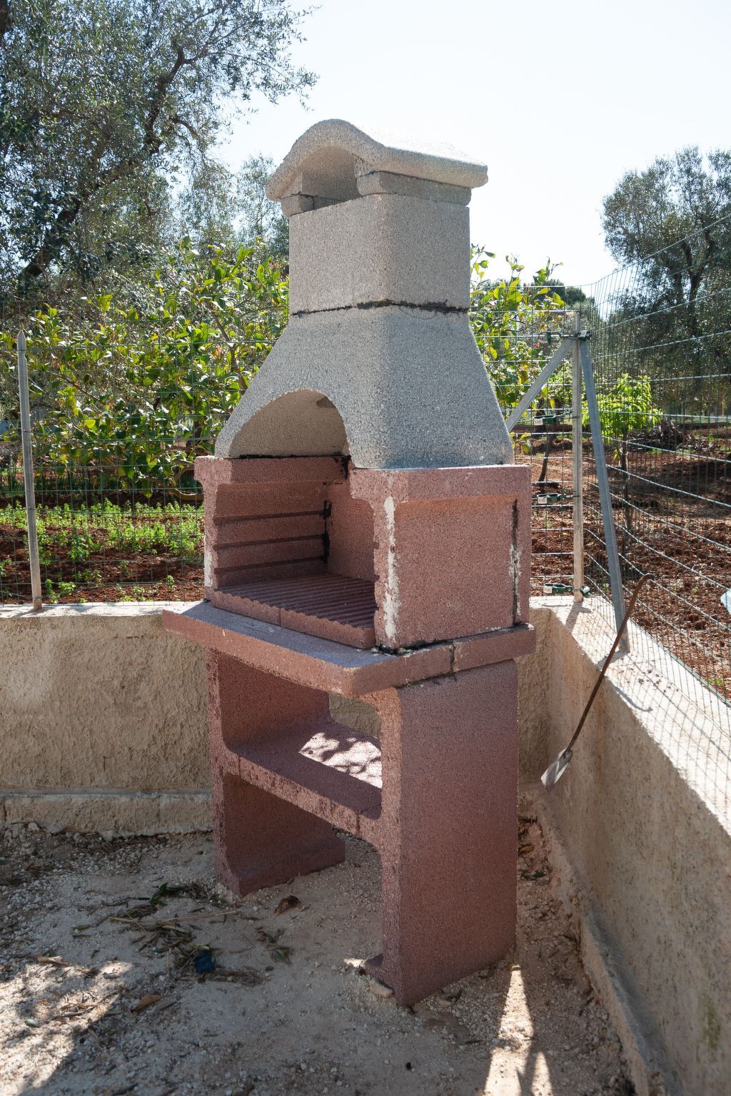 Surrounded by ancient olive and fruit trees, property enclosed with a fence.