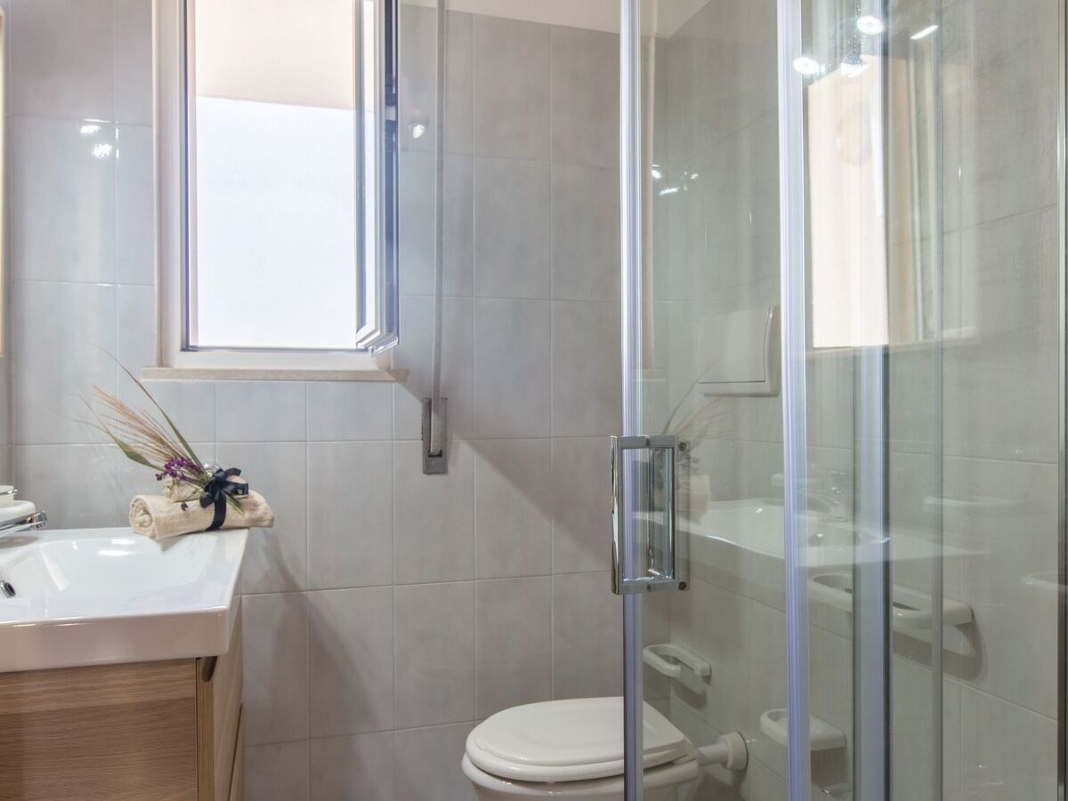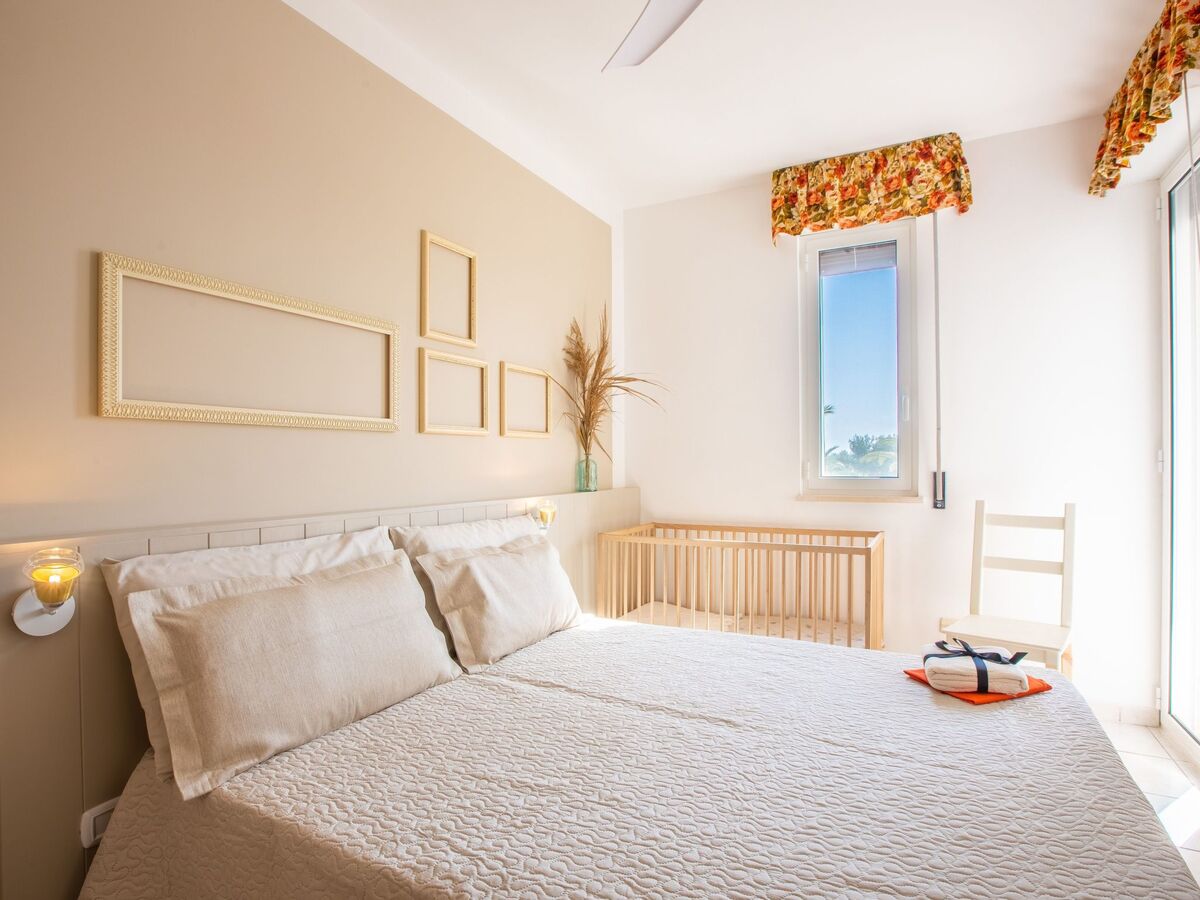 The sandy beach 250 m away is called 'La Mezza Luna' and is half public and half equipped with a private lido, easily reached on foot.