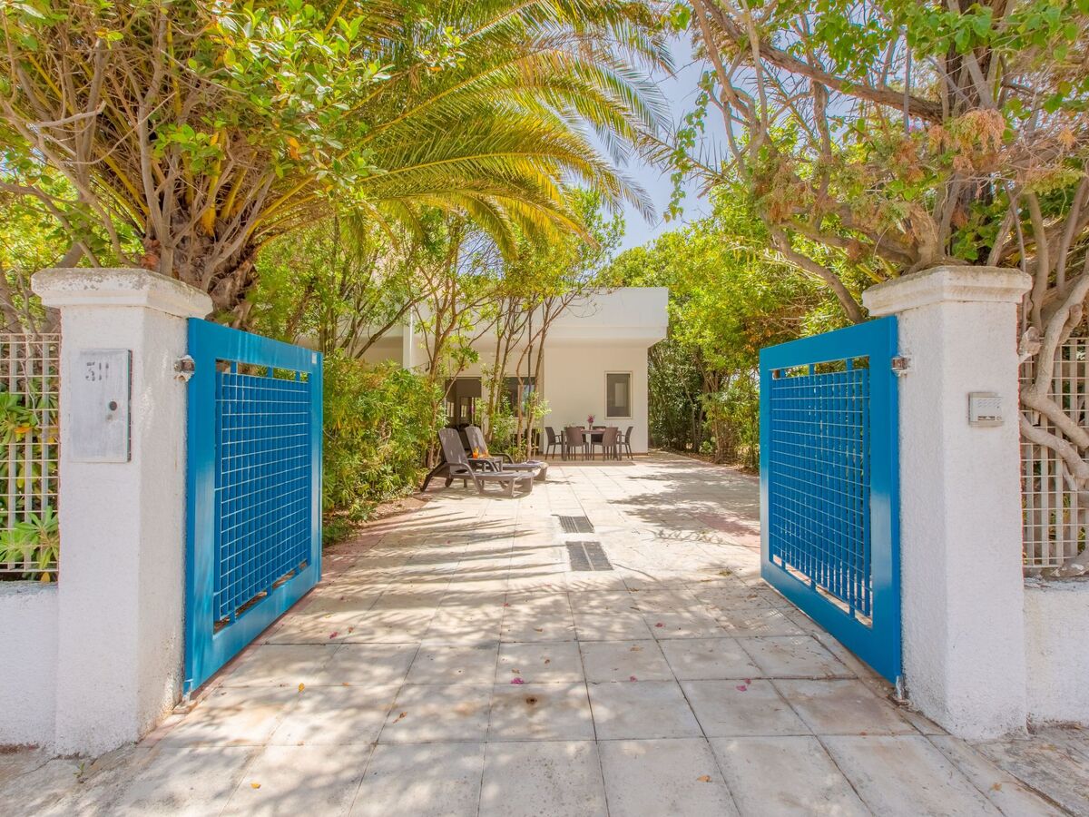 You are in a modern villa with a private, tree-lined garden just twenty metres from the beaches of Pantanagianni.