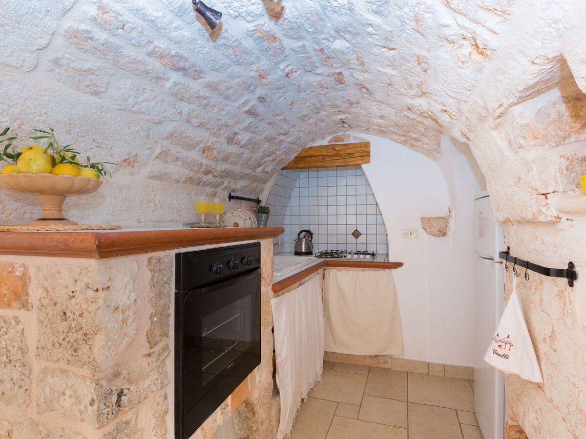 Le trullo se compose d'une salle à manger avec coin cuisine, une salle de bain avec douche, une chambre avec 3 niches en pierre avec un lit double et deux lits simples.