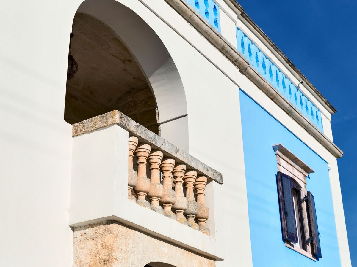 Characteristic are its beautiful façade as blue as the Apulian sky and its romantic stone balcony.