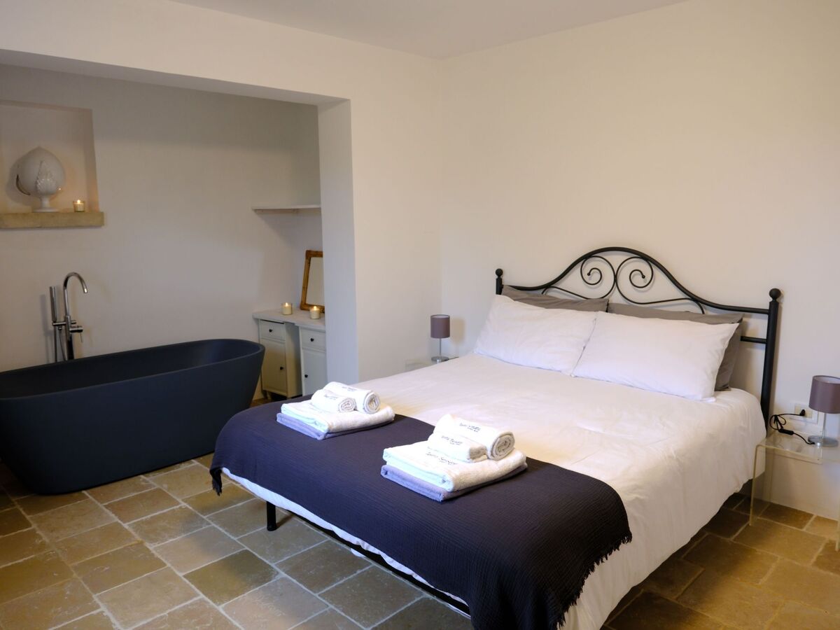 Externally, each dwelling boasts its own private pool and a panoramic garden with lawn areas and ancient olive trees, from which one can enjoy breathtaking views of the valley.