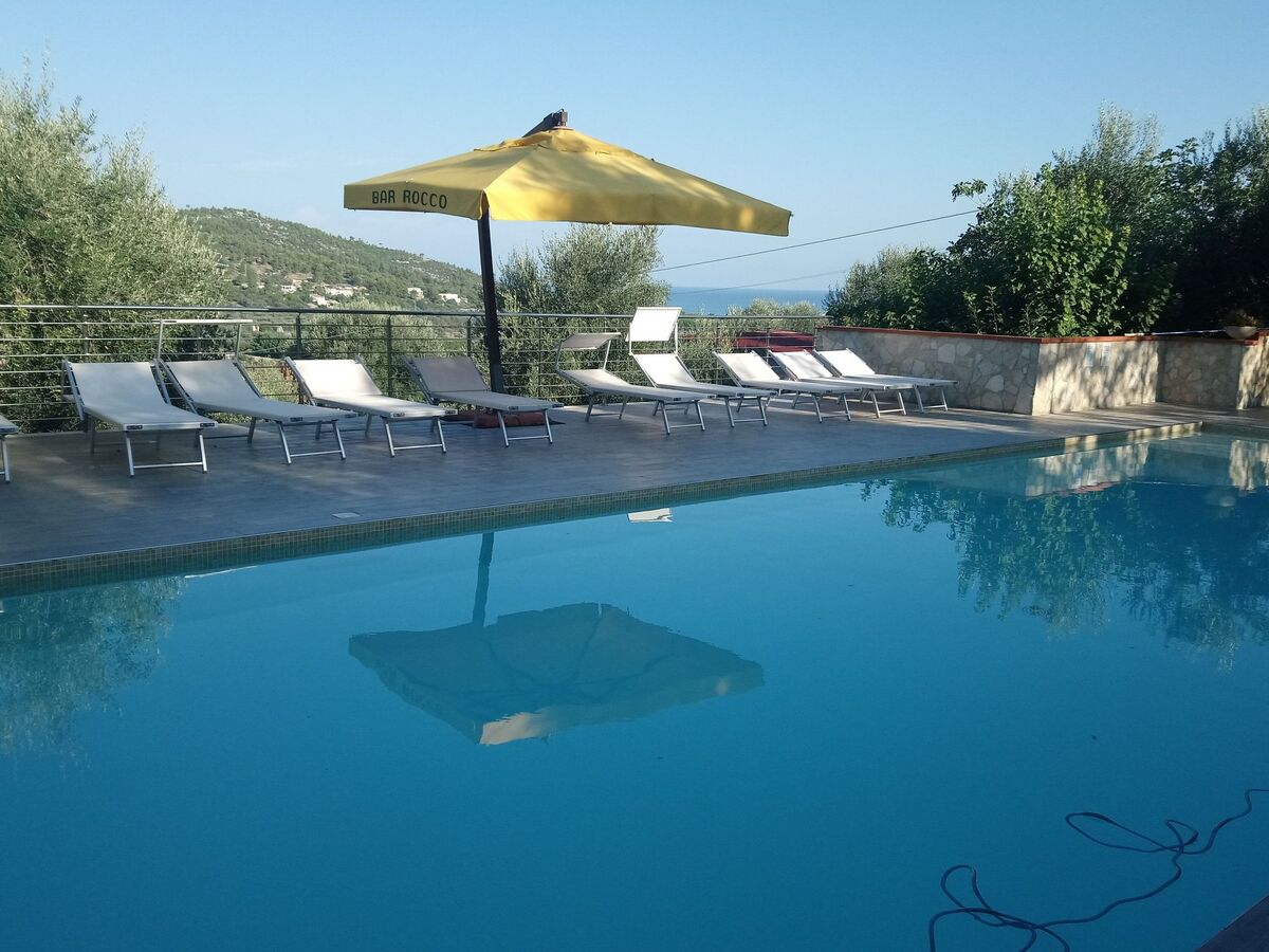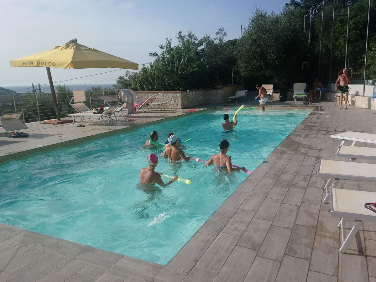 Furthermore you will find a fenced car park, a garden, barbecue, playground and swimming pool for children.