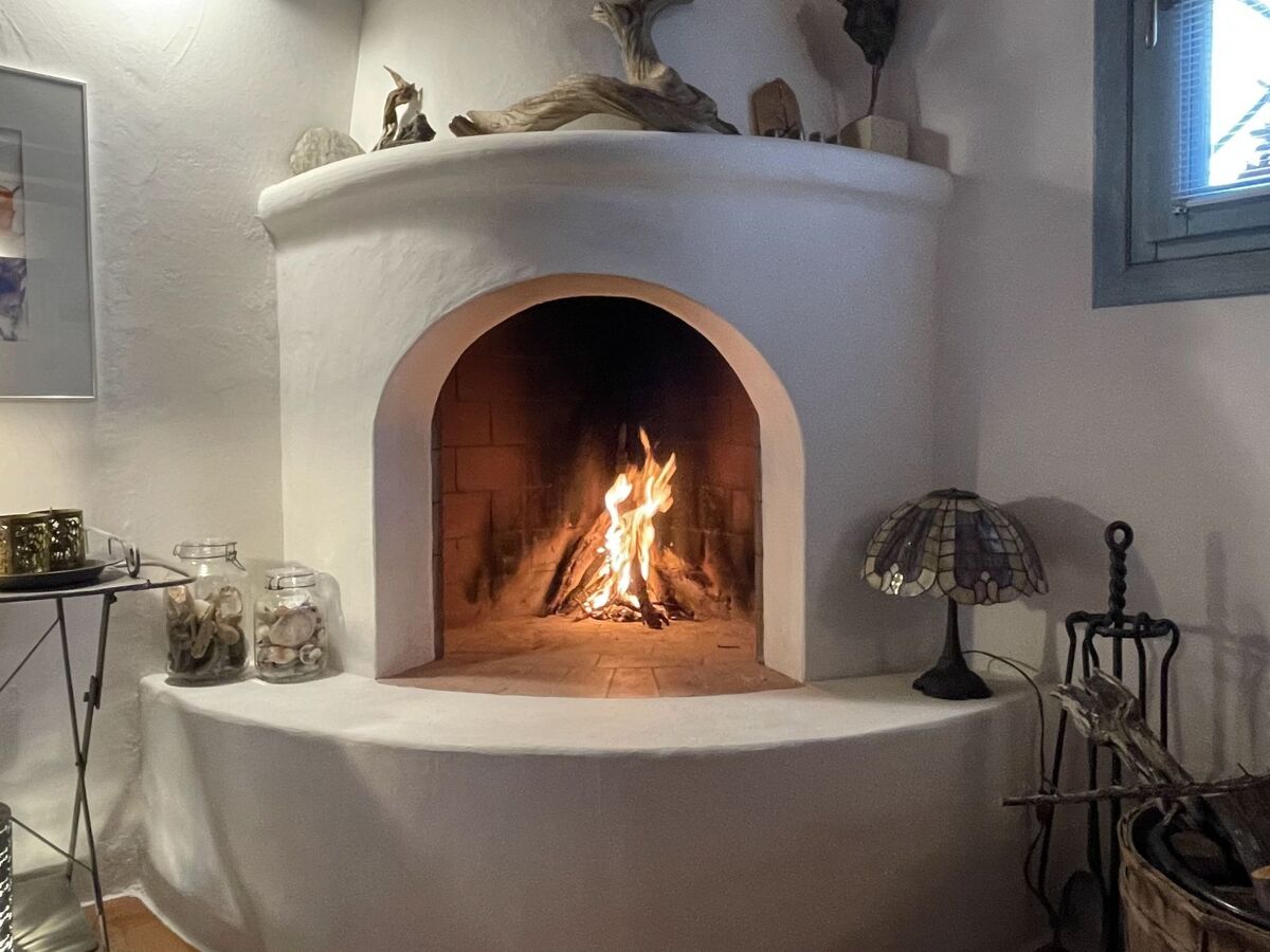 From the open-plan living area with fireplace you have a magnificent view over the land and sea.
