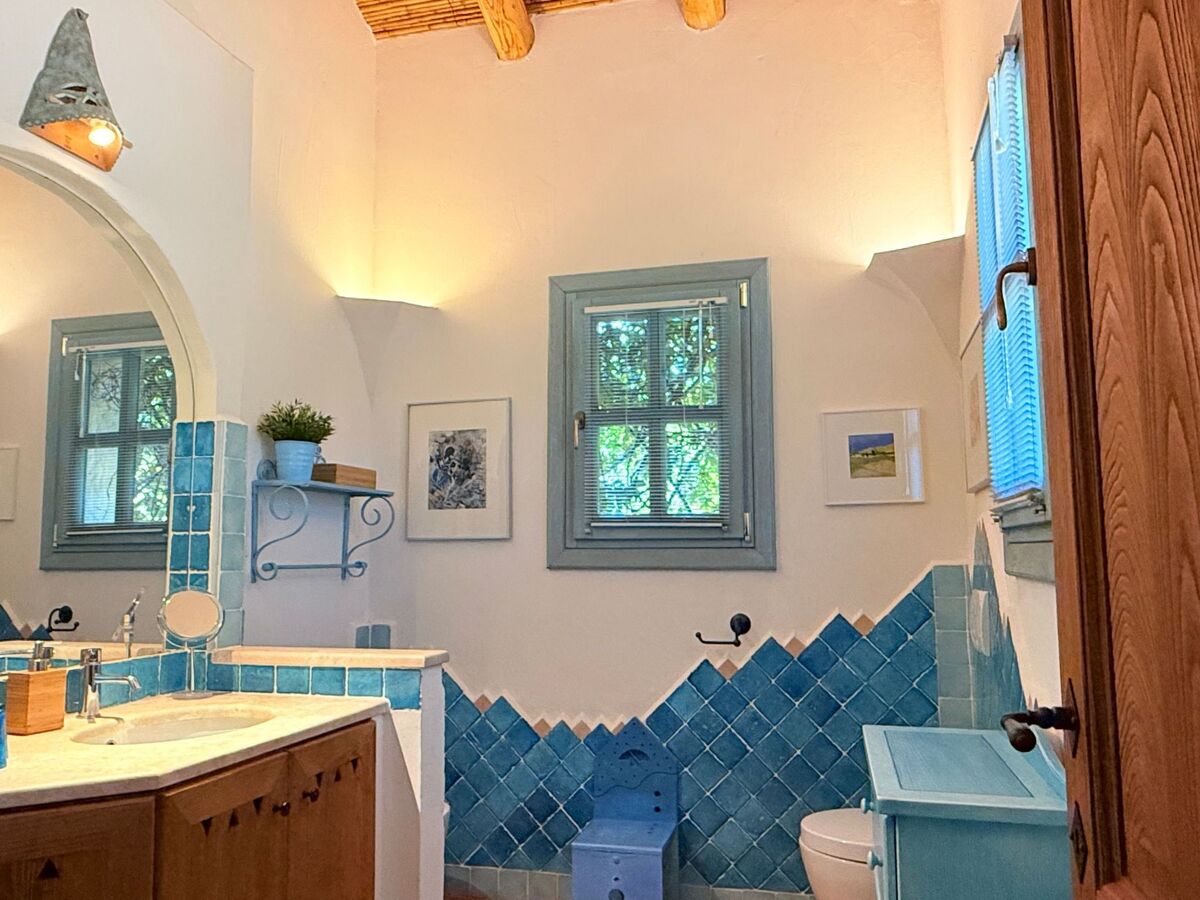 Up here, away from the noise of the streets, there is a relaxing silence, but in a few minutes you can reach the small, lively towns such as Cannigione, Arzachena, San Pantaleo, or Porto Cervo, the centre and port of the Costa Smeralda, with their colourful markets, small cosy cafés and restaurants (recommendations and contacts can be found in the house), individual shops and supermarkets, the wonderful beach promenades and playgrounds.