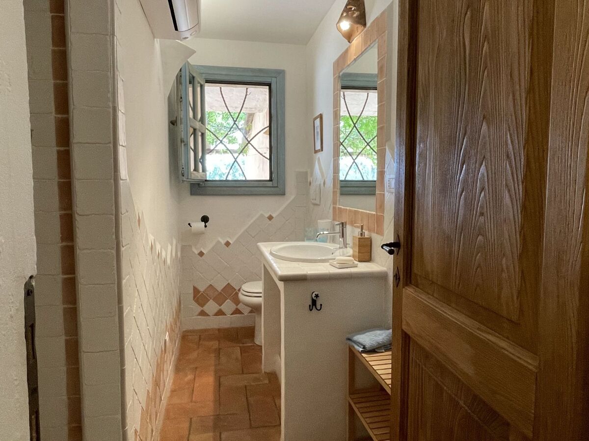 The house is built according to ecological principles and is situated on a hill in a spacious, partly rocky landscape with typical Sardinian vegetation.