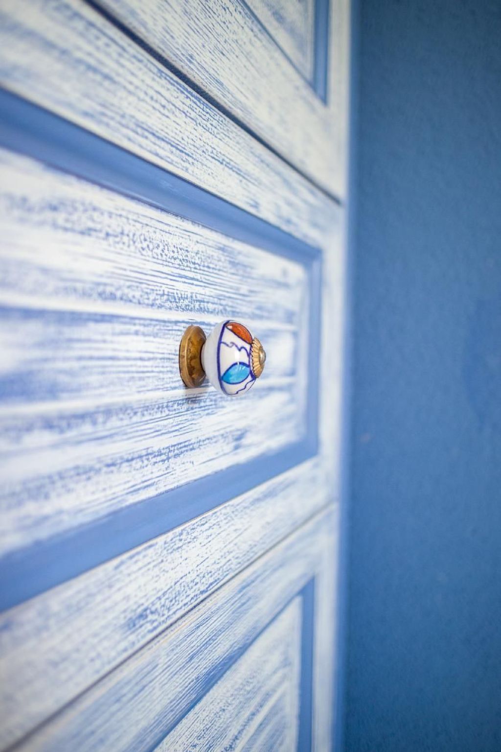 The sleeping area consists of a double bedroom with wooden furniture carved by local craftsmen and direct access to the garden, as well as a small bedroom with a bunk bed and a cosy loft furnished with futons.