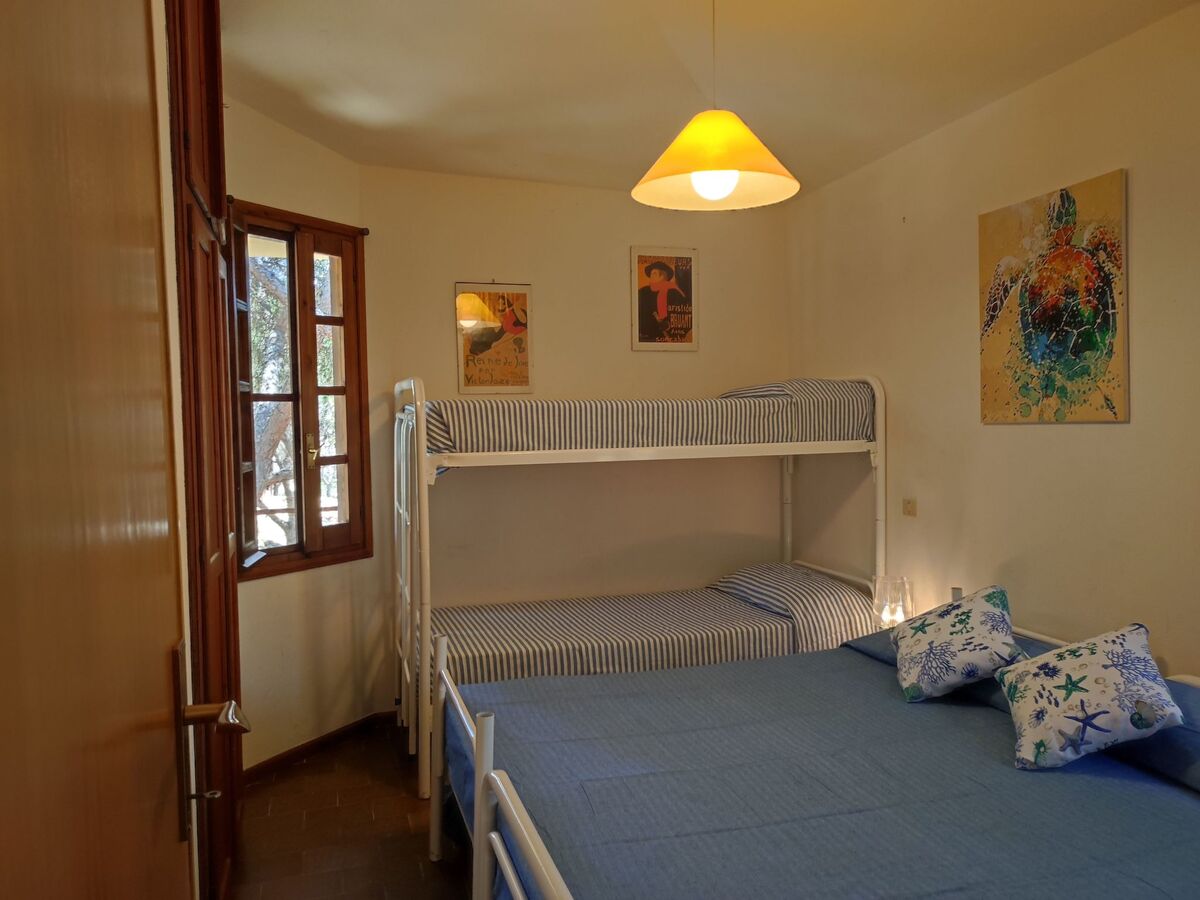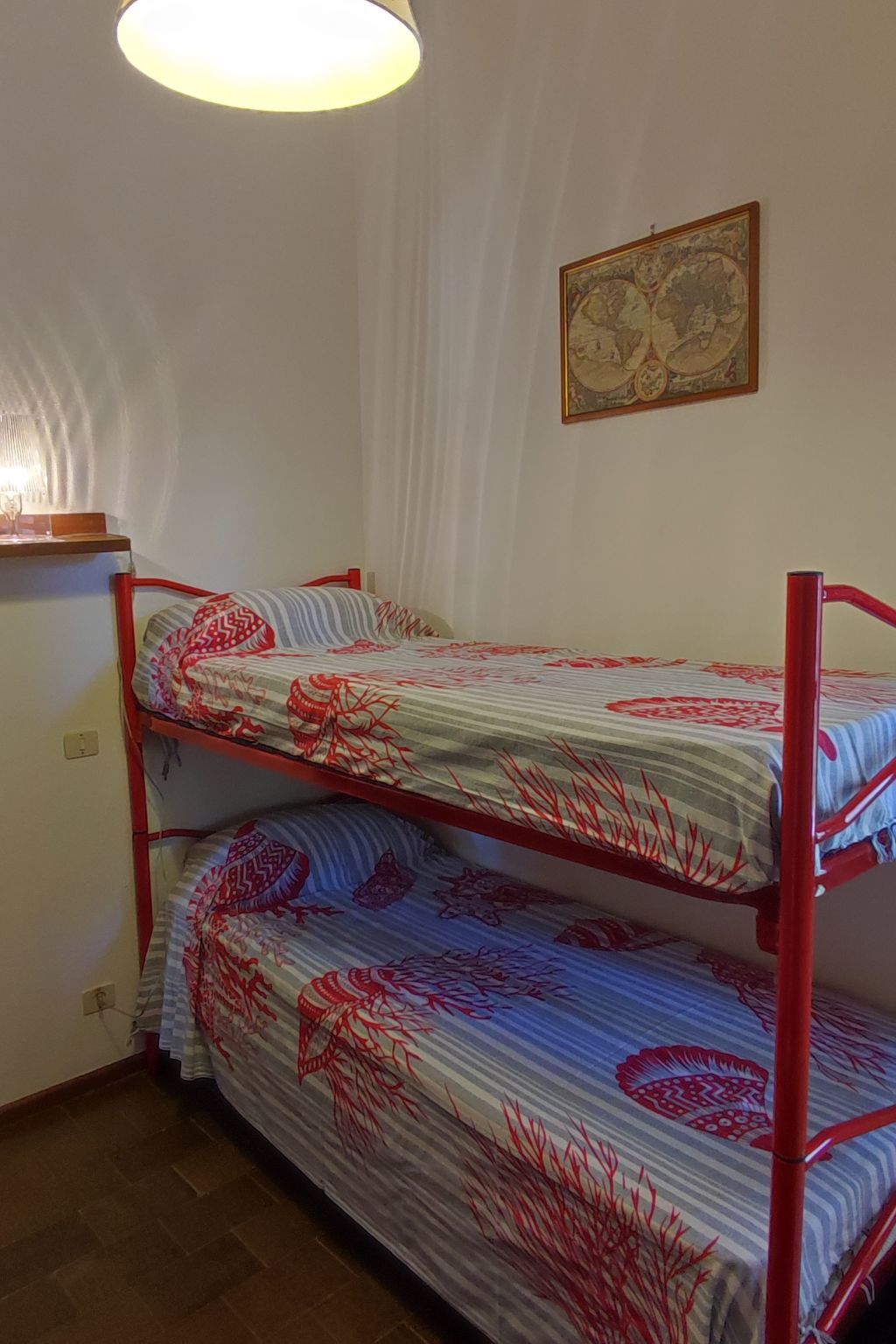 On the first floor is the sleeping area with: one double bedroom, one bedroom with a double bed and a bunk bed and two bathrooms.