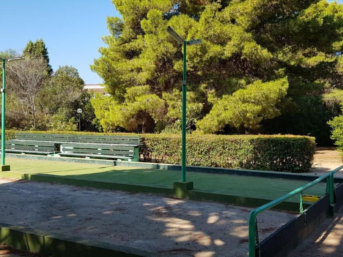 Tennis courts (high season for a fee), boggia court, football pitch and basketball court.