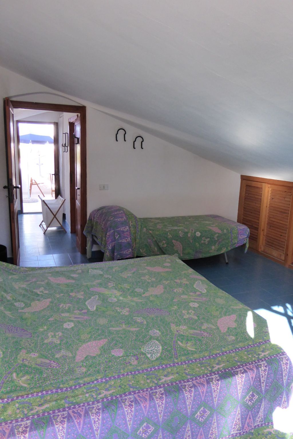 Also on the ground floor is a bedroom with two single beds (80x190 cm) that can be combined into a double bed on request, a built-in wardrobe and a direct exit to the patio.