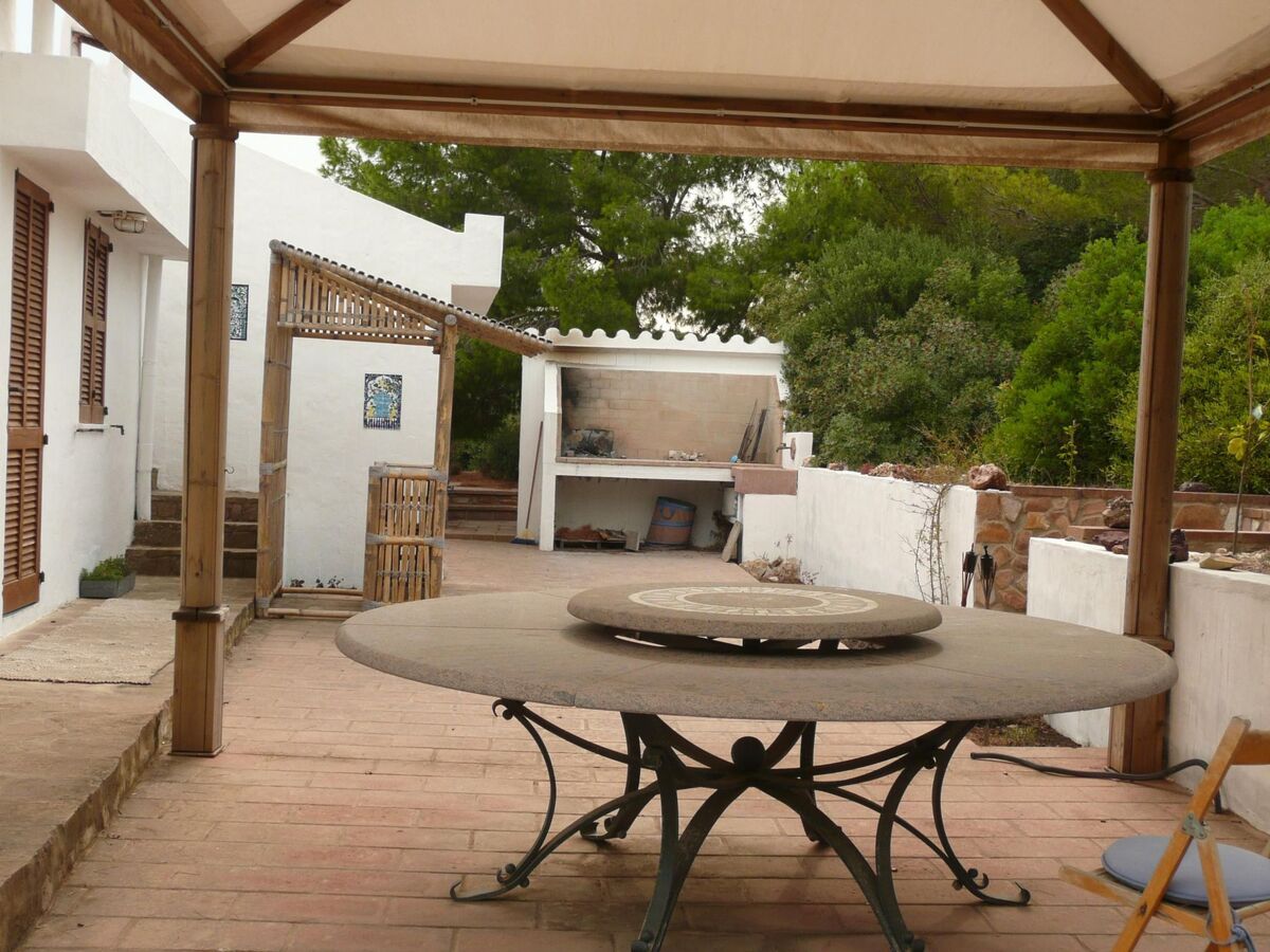 The kitchen leads directly out onto the patio, where there is a large dining table that seats 10.