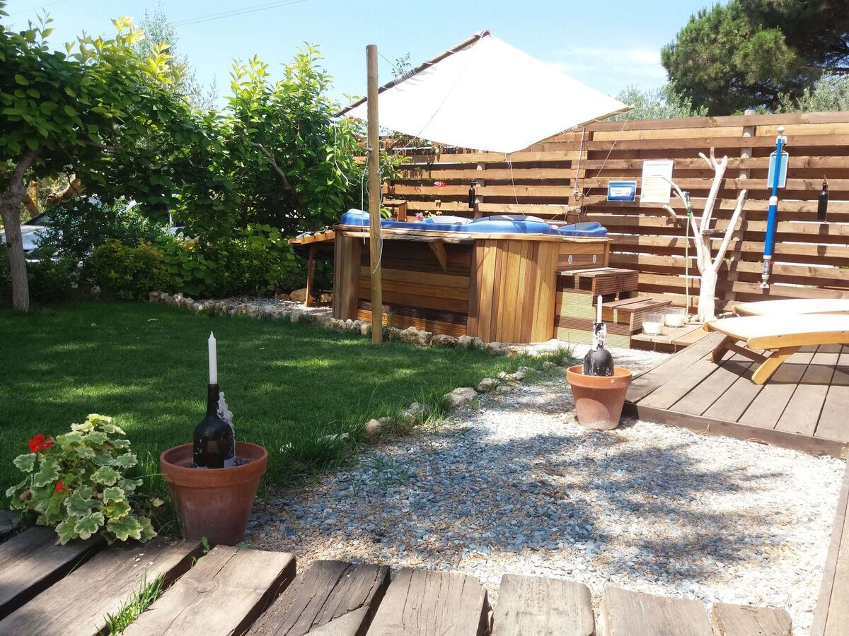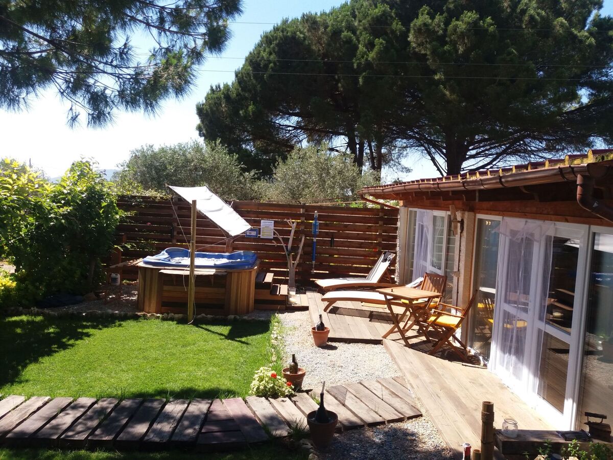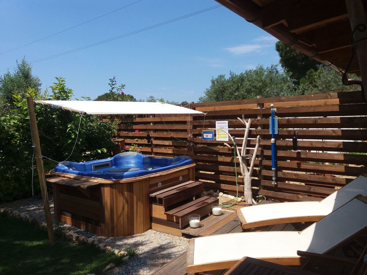 A la campagne (environ 1 hectare) il y a deux unités indépendantes et privées : une villa avec piscine privée et ce gîte, un petit chalet avec un jacuzzi extérieur.