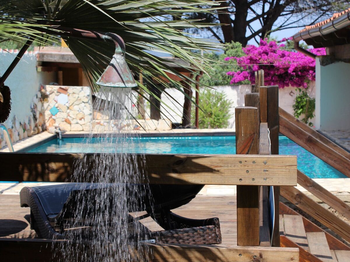 These include a large wooden terrace where guests can relax under the starry sky, a barbecue corner for convivial evenings, an impeccable lawn for moments of pure relaxation, and last but not least, a private emerald-coloured swimming pool, set in tufa stone, to cool off on hot summer days.