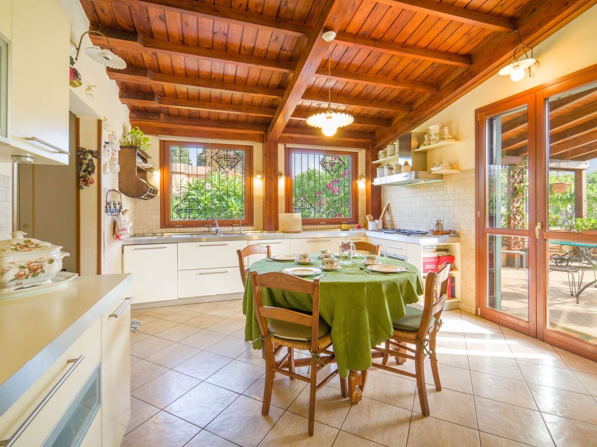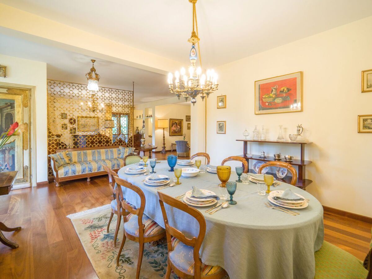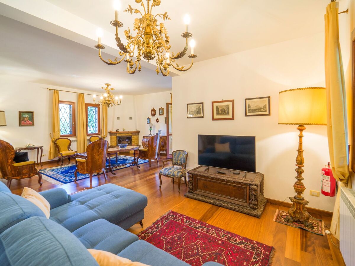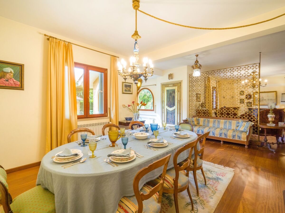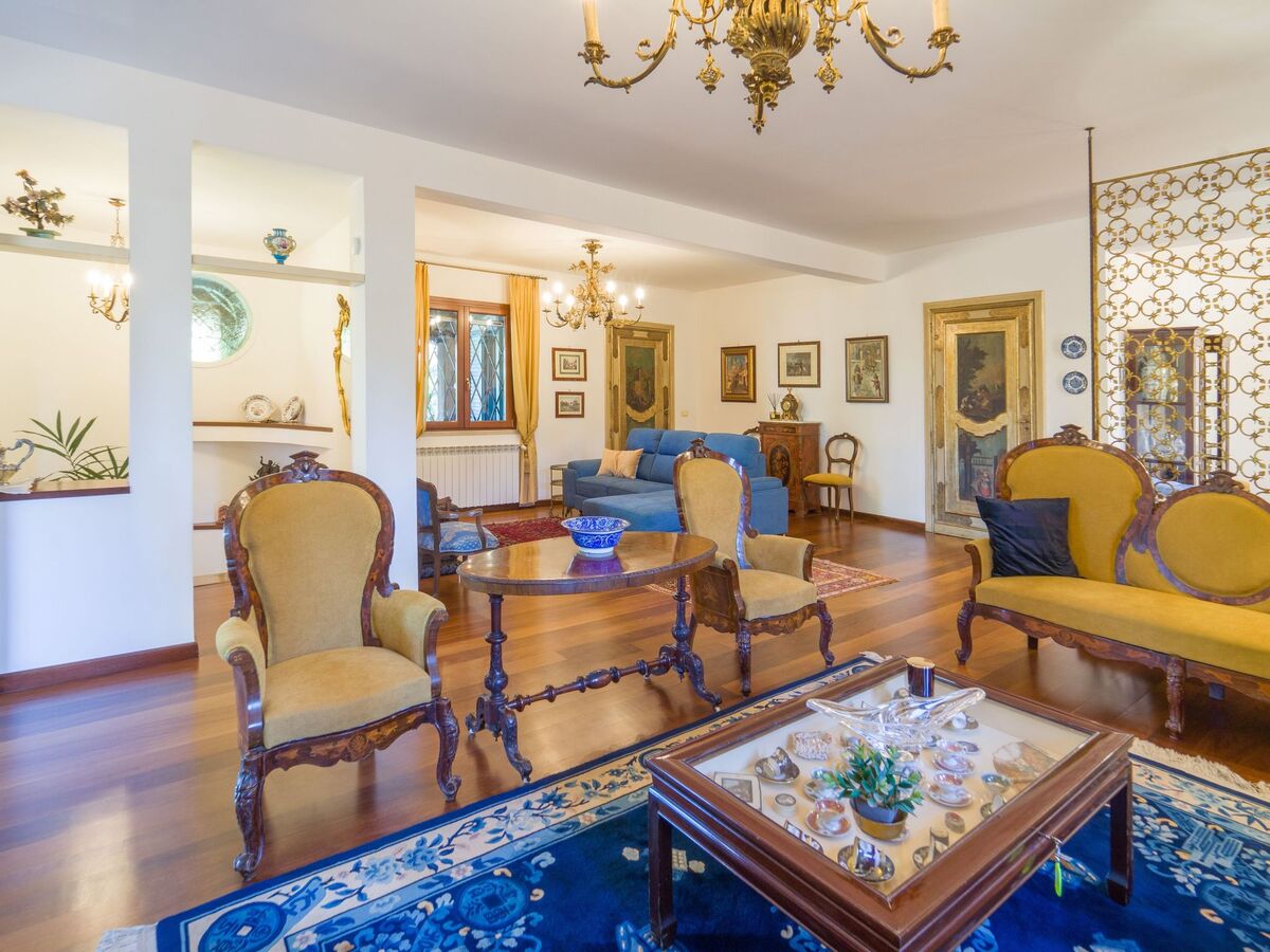 Inside the house is particularly charming with a living room that shows different areas with beautiful sofas, sophisticated armchairs, a beautiful dining table and a bright and luxurious atmosphere.