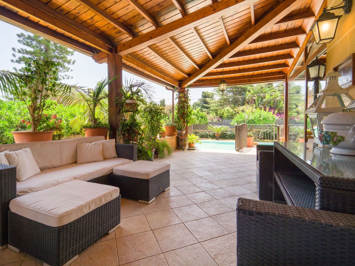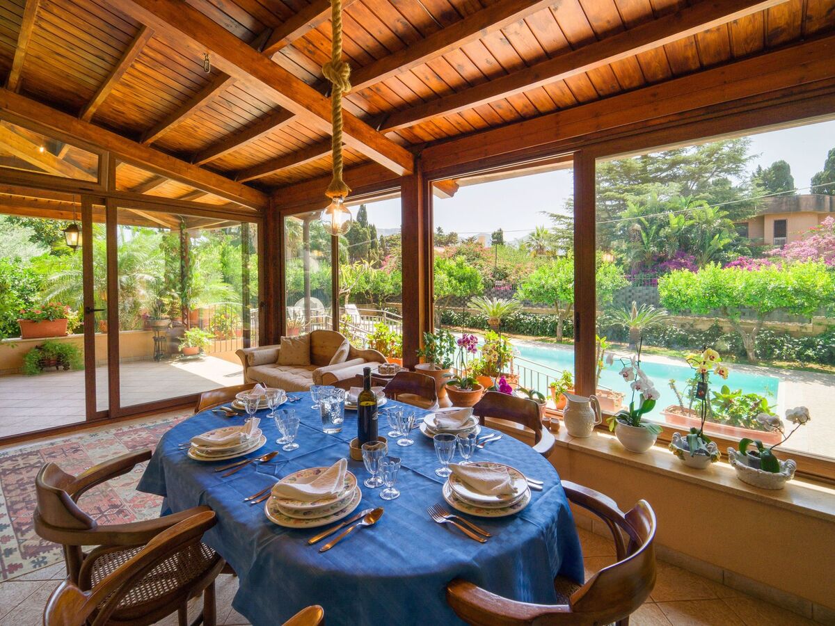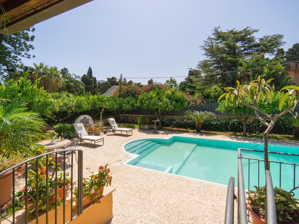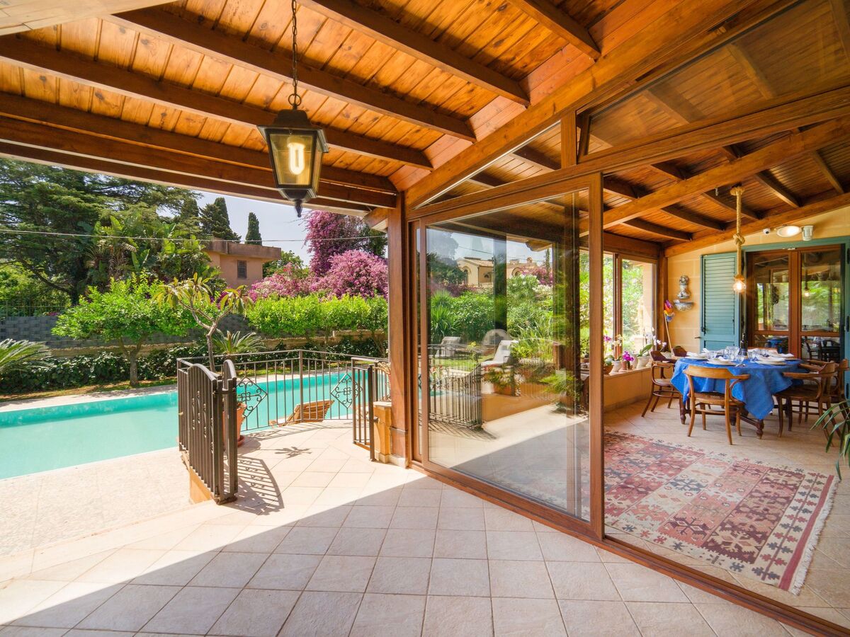 The villa has a splendid swimming pool close to an elegant internal patio, part of which has a glass window overlooking the garden and the solarium.