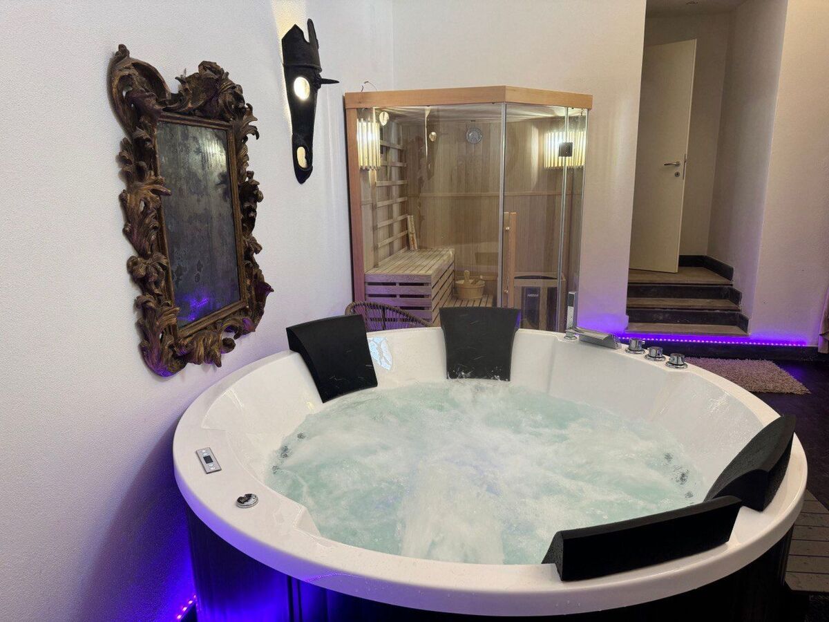 Separate toilets are available The farmhouse has a safe, a hoover, cleaning products, an iron and ironing board, a tumble dryer, air conditioning, a washing machine, central heating, a jacuzzi and a desk.