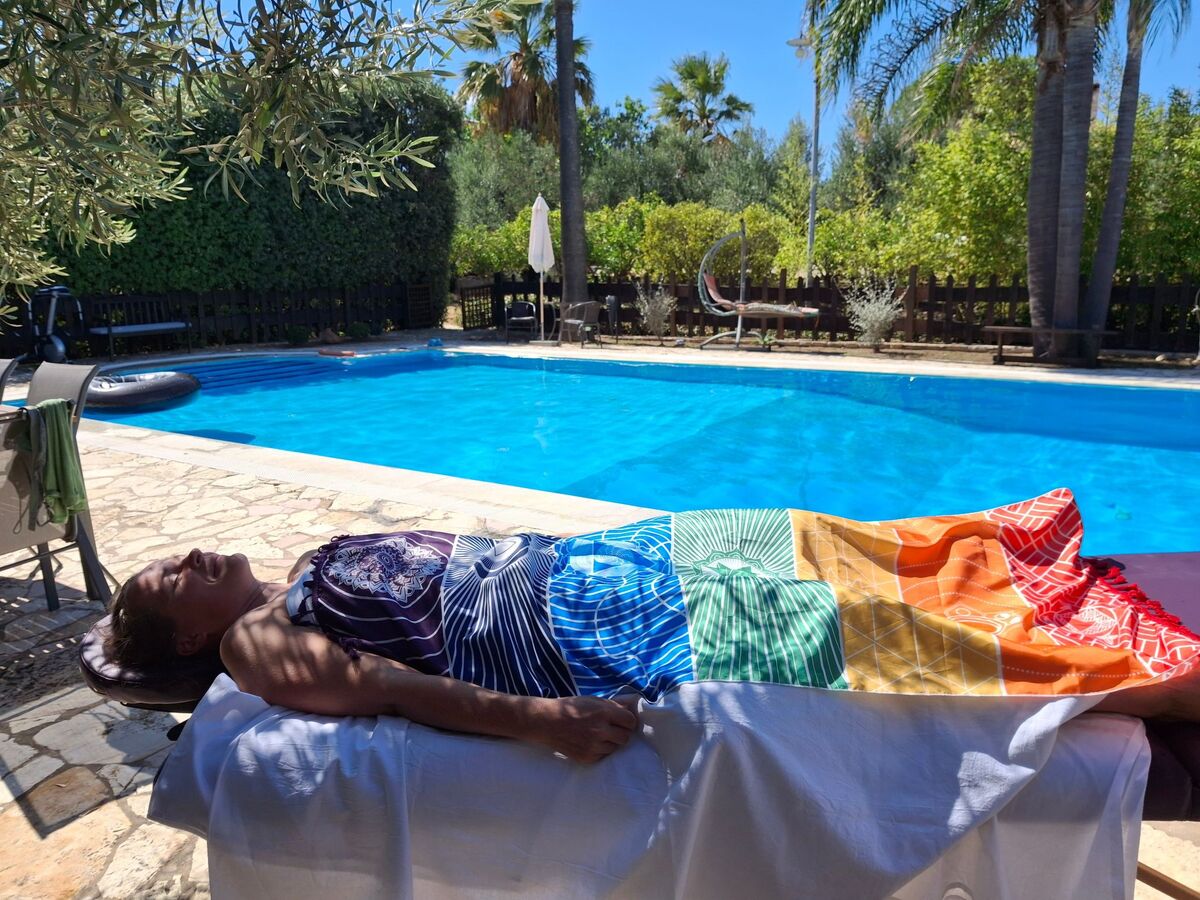On hot days, you can cool off by the pool and enjoy the Sicilian sun.