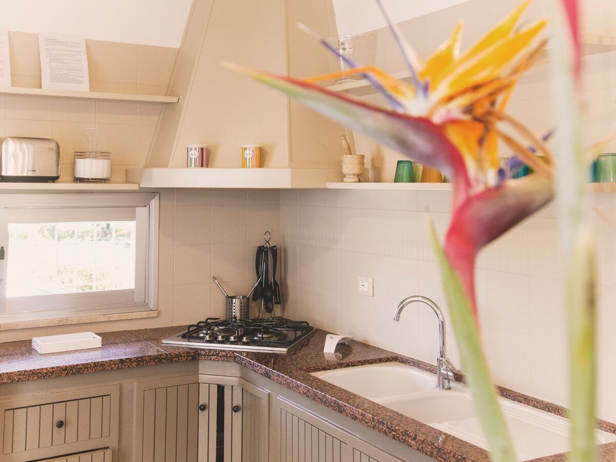 The residence, located in the countryside in a flat area, is surrounded by large equipped spaces and a lush garden with olive, almond, citrus, aromatic and ornamental plants.