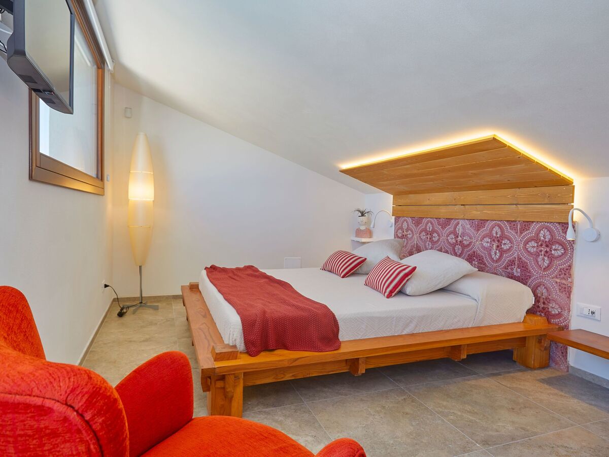 In the basement there is a double bedroom, one bathroom with shower and a relaxing area with sofa and tv.On the first floor, reachable from exterior access, there is a charming suite with sea view and en-suite bathroom with tub.