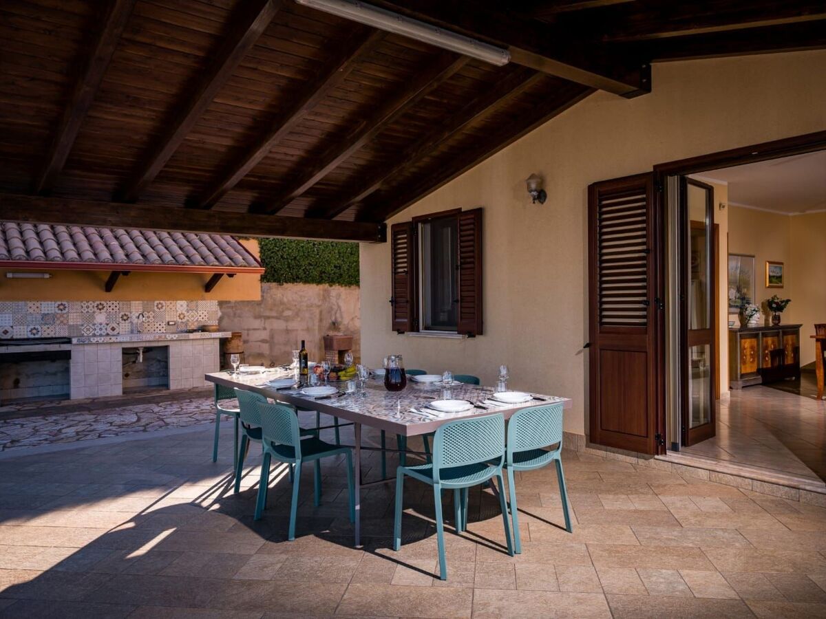 Au bord de la piscine se trouve un grand patio, l'endroit idéal pour savourer un repas sicilien avec un splendide panorama sur le ciel et la mer.