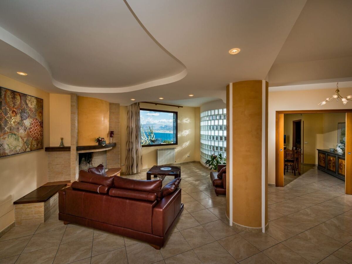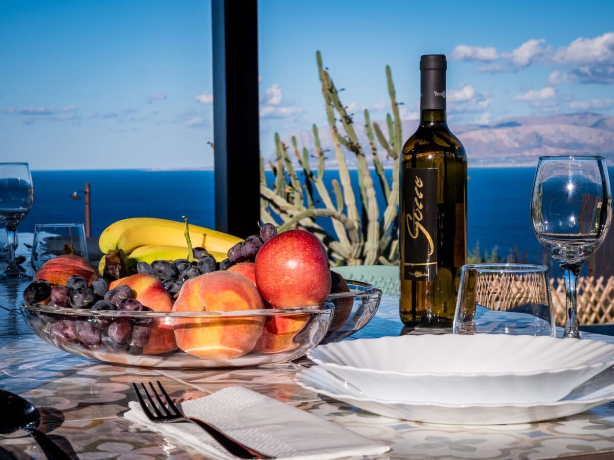 Une grande véranda permet au visiteur de profiter et de balayer le panorama de toute la côte, jusqu'à Punta Raisi, tandis que le regard se perd dans le bleu de la mer.
