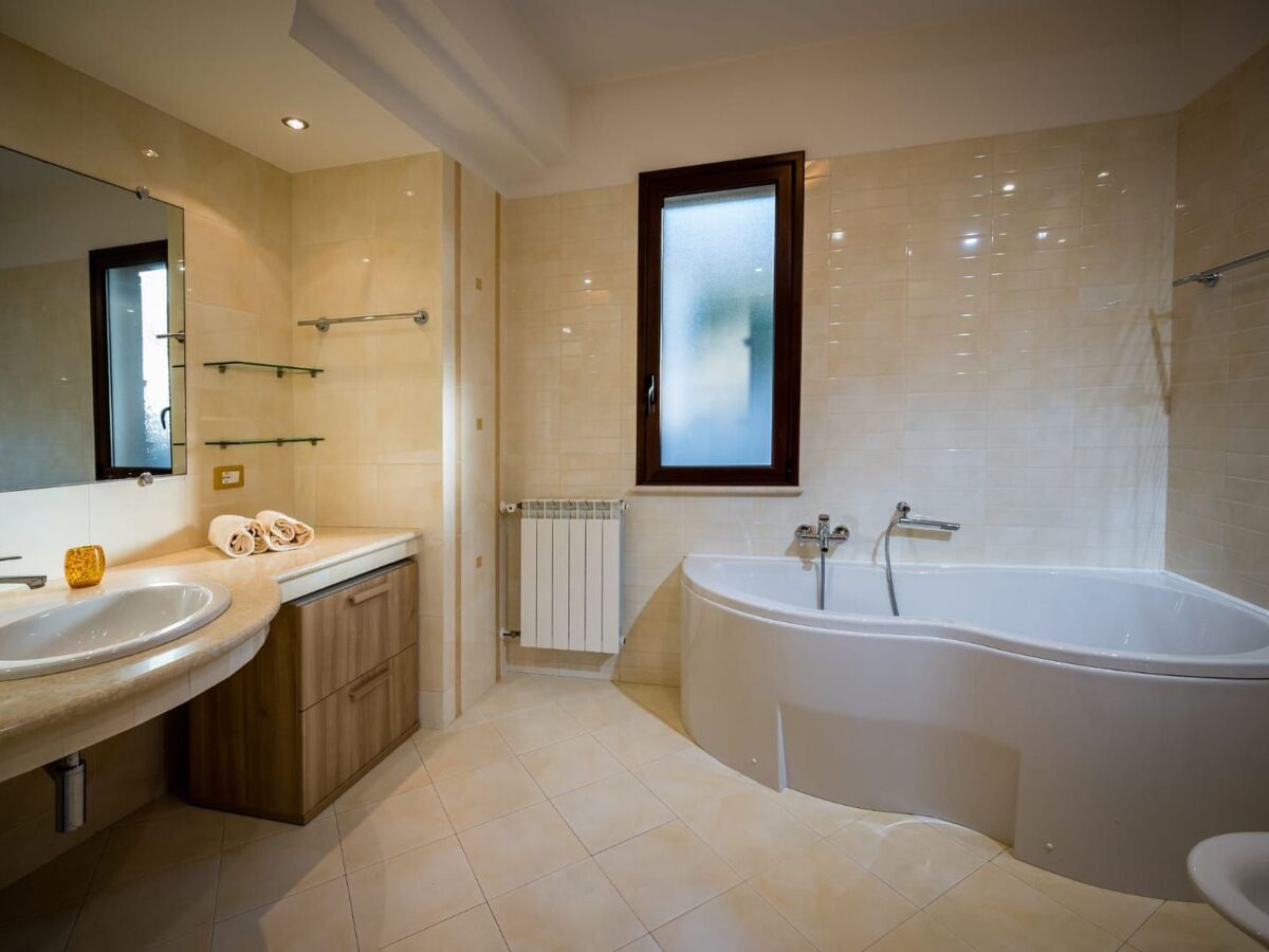 Il y a deux salles de bains, l'une avec une baignoire et l'autre avec une douche.