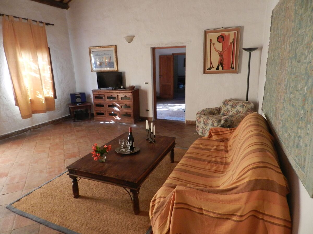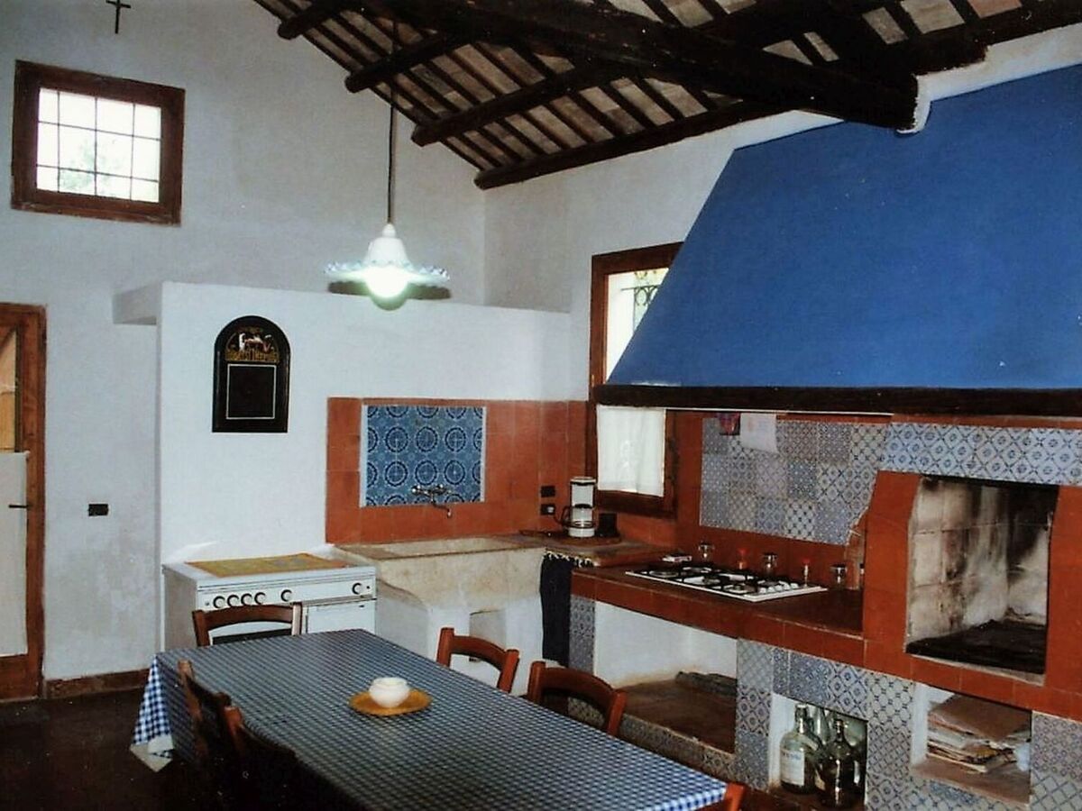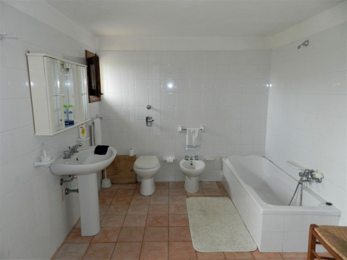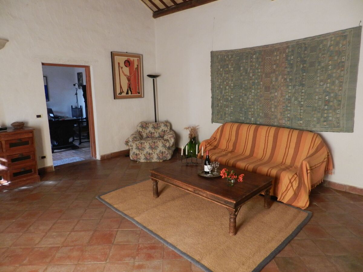 Fireplace, brick worktop, dishwasher, microwave and washing machine), immense living-bedroom with double sofa bed and exit to veranda, study with stereo, extra bed, lounge with 2 sofa beds, Sat.TV and exit to the garden, intermediate room with single bed and air conditioning, 2 further, very spacious 3-bed rooms, 2 small new bathrooms and a large bathroom (with bathtub) The furnishings are rich and good, many valuable, old pieces in dark wood, high rooms with typical wooden beam ceilings, beautiful terracotta floors, a wood stove and a gas heater are available for the transitional period.