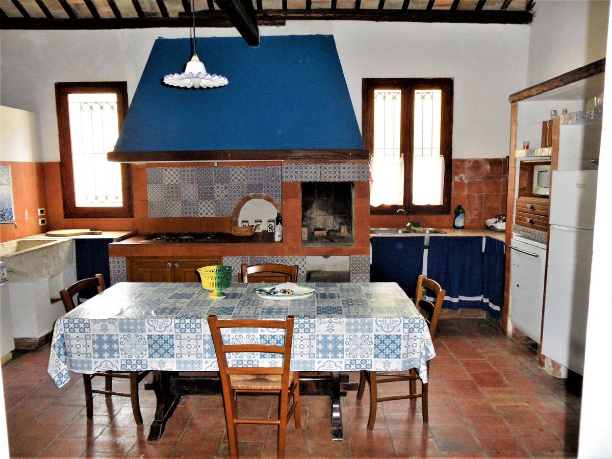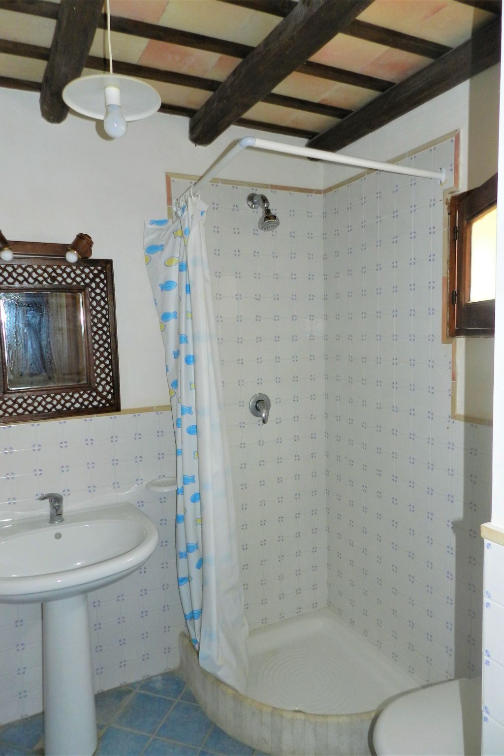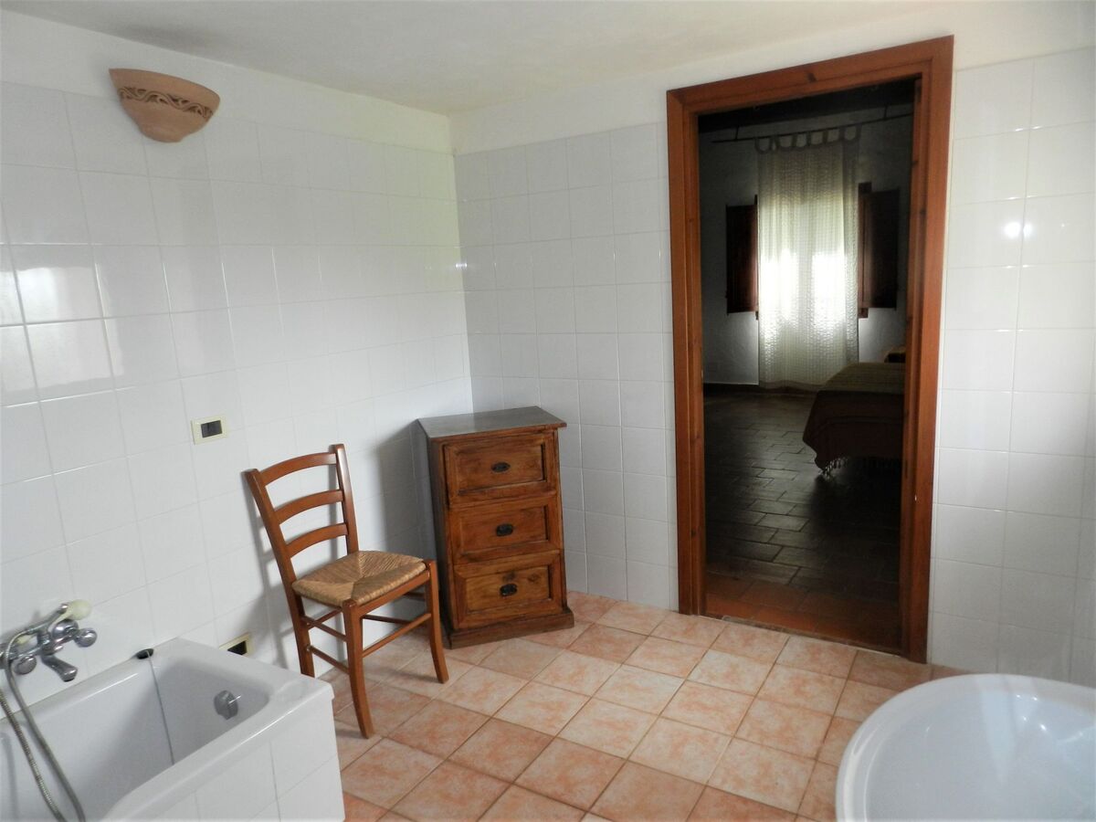 Fireplace, brick worktop, dishwasher, microwave and washing machine), immense living-bedroom with double sofa bed and exit to veranda, study with stereo, extra bed, lounge with 2 sofa beds, Sat.TV and exit to the garden, intermediate room with single bed and air conditioning, 2 further, very spacious 3-bed rooms, 2 small new bathrooms and a large bathroom (with bathtub) The furnishings are rich and good, many valuable, old pieces in dark wood, high rooms with typical wooden beam ceilings, beautiful terracotta floors, a wood stove and a gas heater are available for the transitional period.