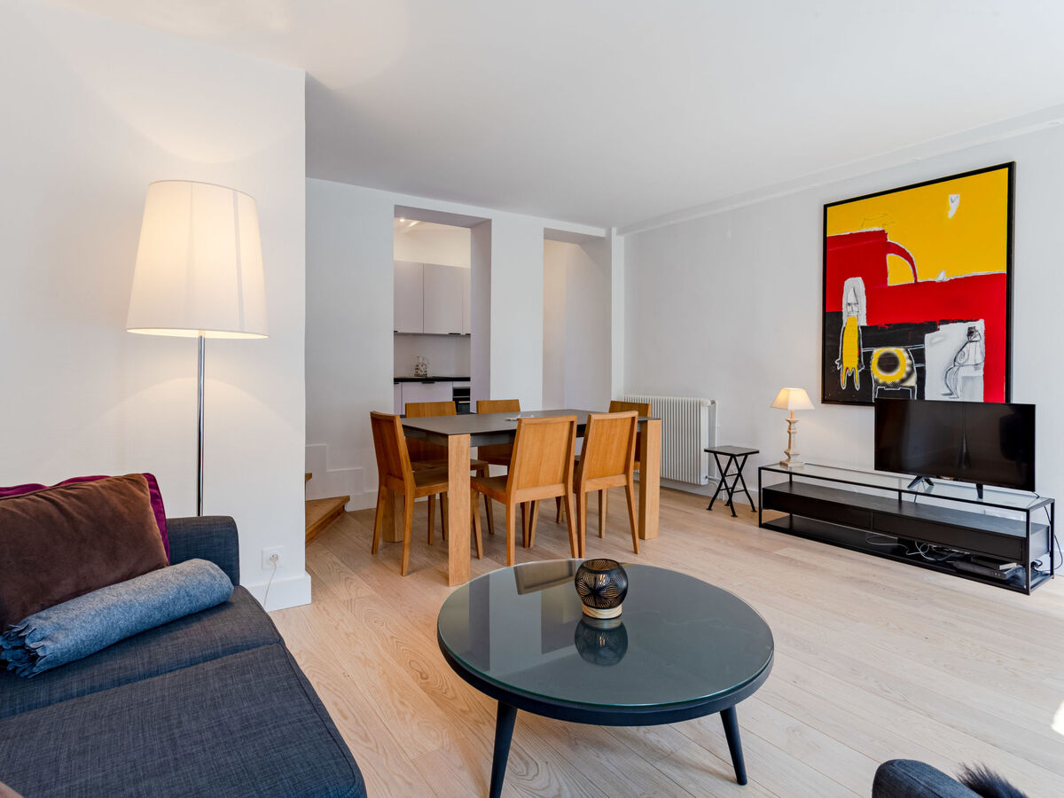 Clair, rénovée en 2022, aménagement agréable: séjour/salle à manger avec TV (écran plat).