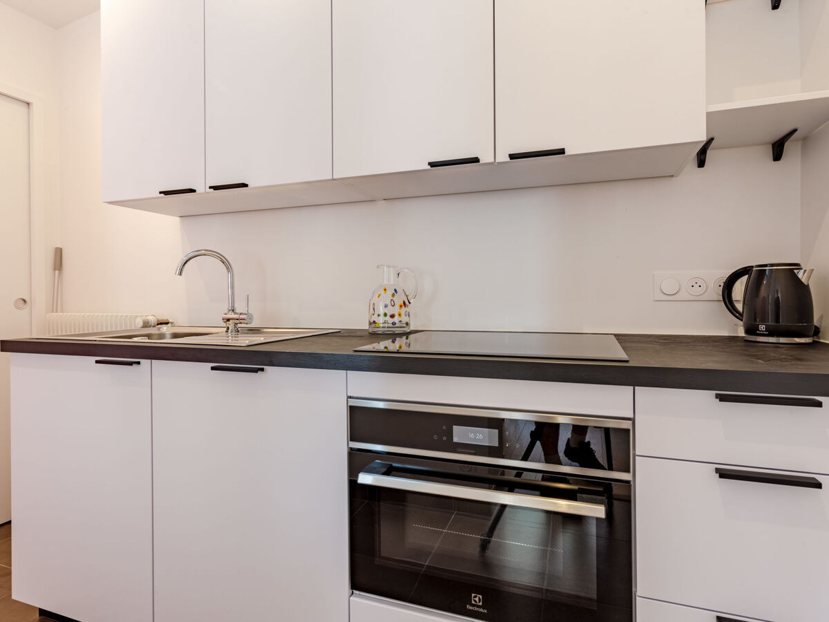 Cuisine ouverte (4 plaques de cuisson, four, lave-vaisselle, grille-pain, bouilloire électrique, congélateur, cafetière électrique).