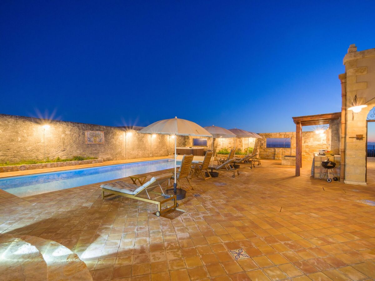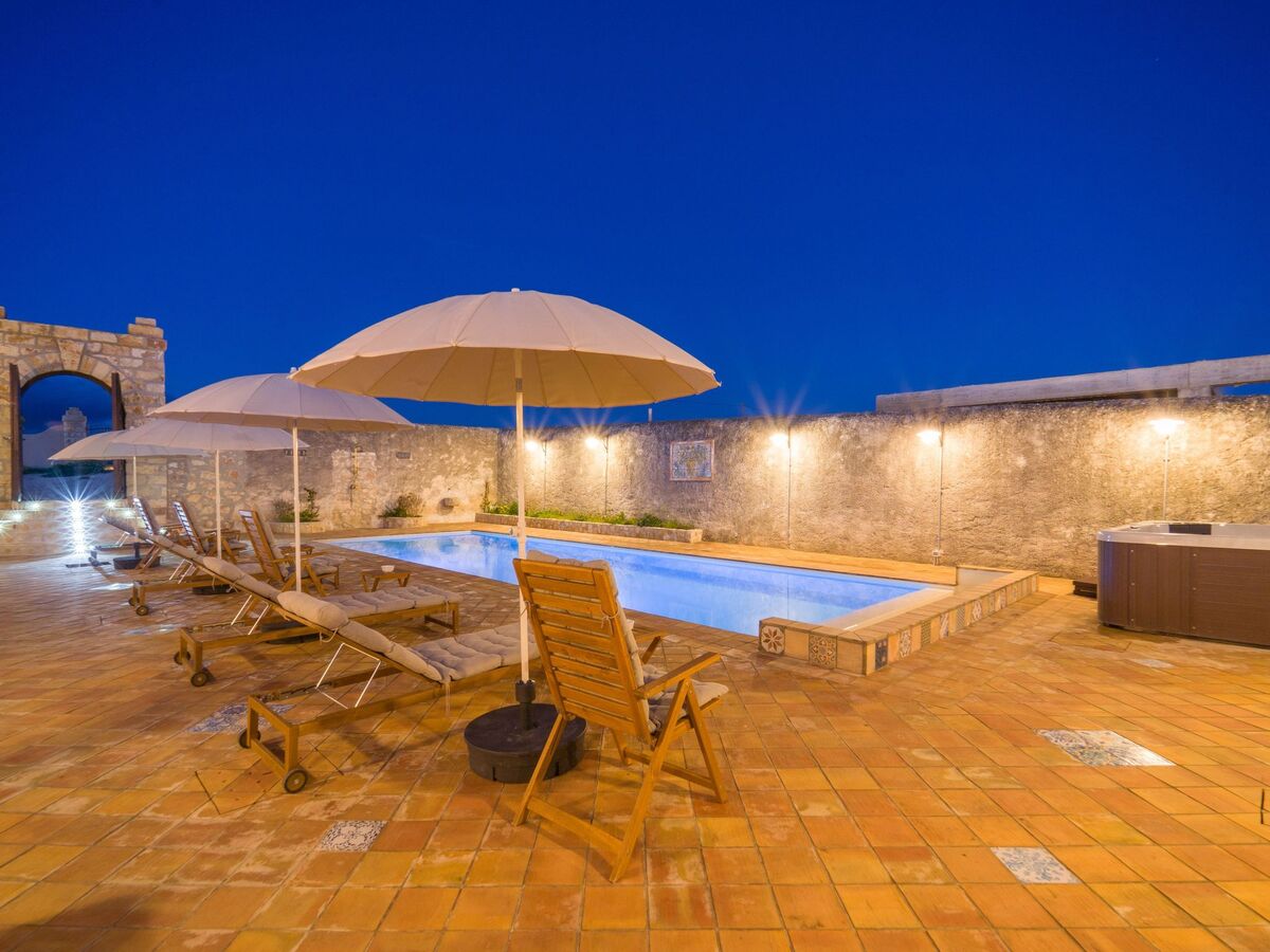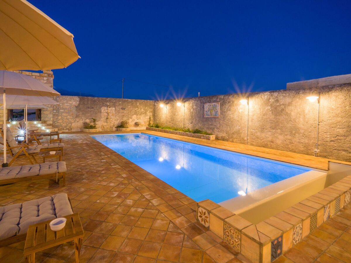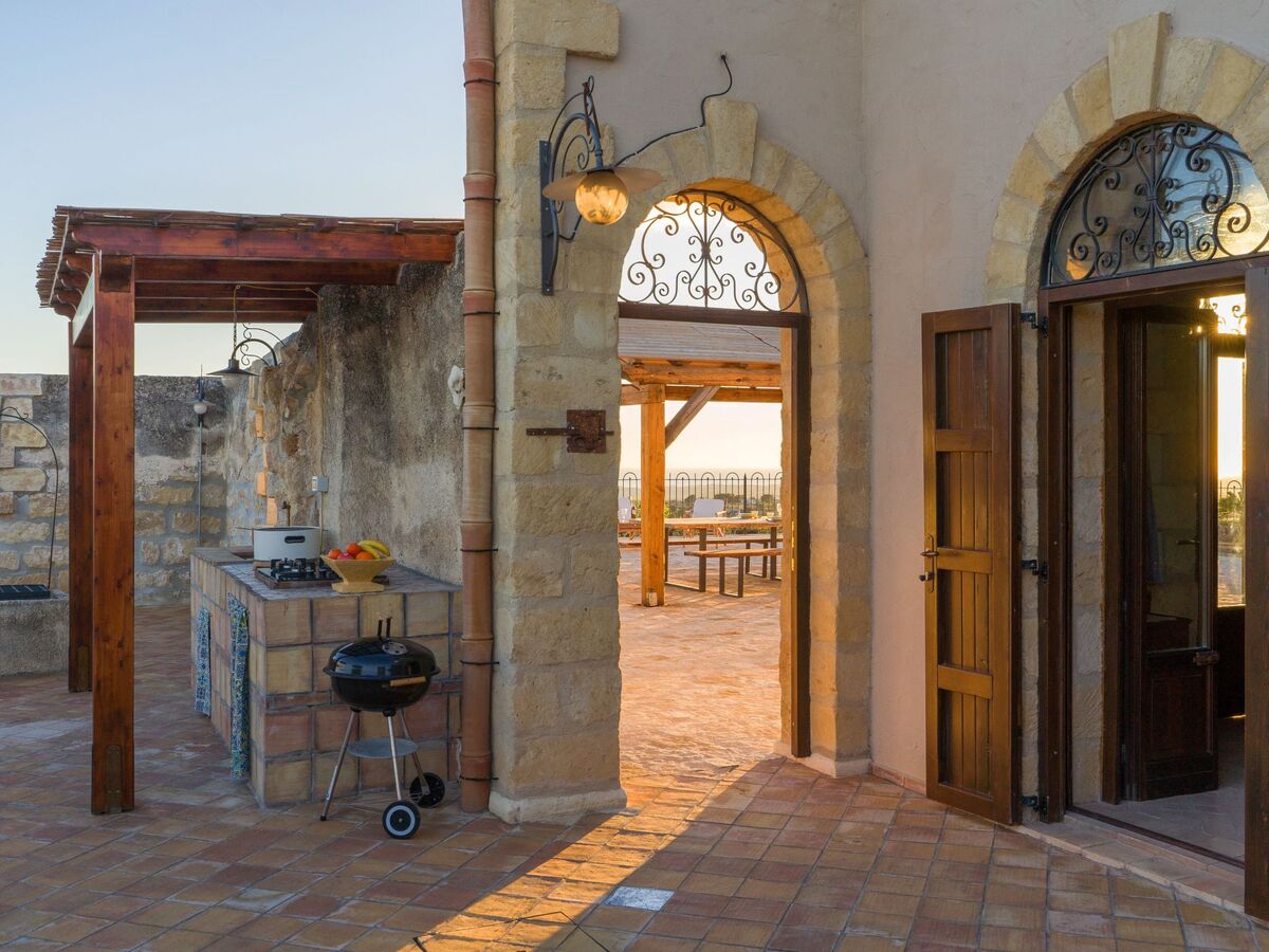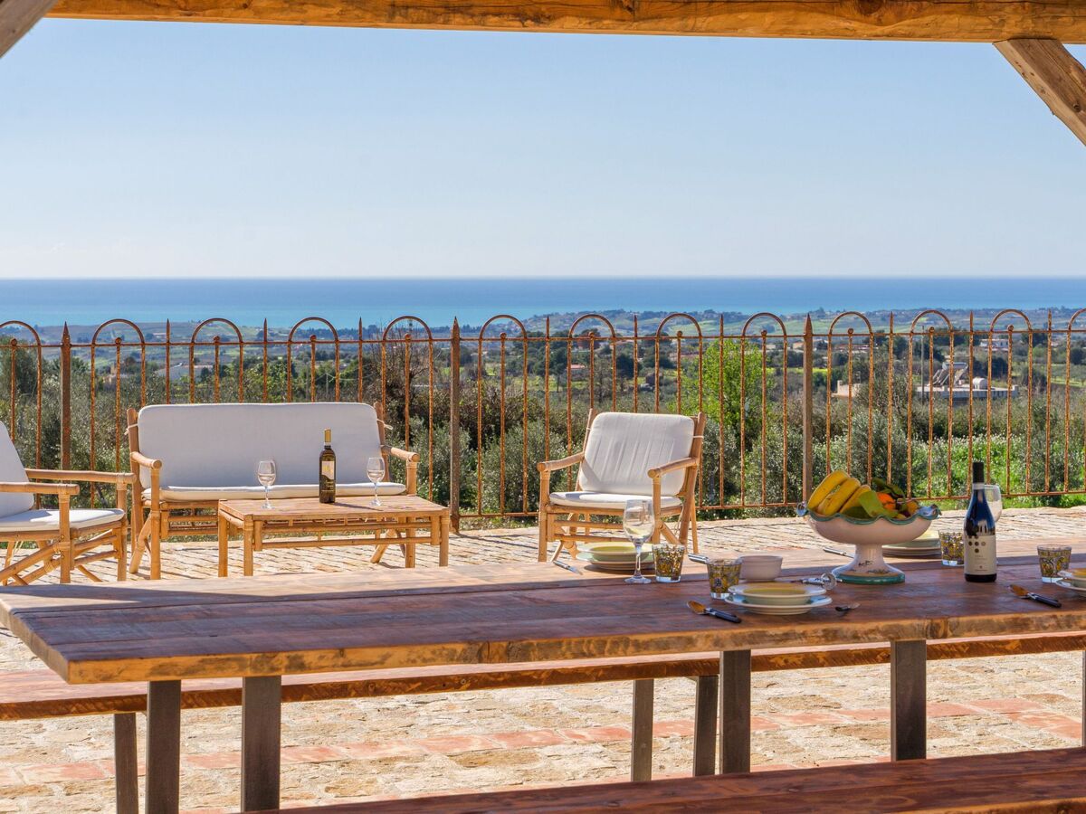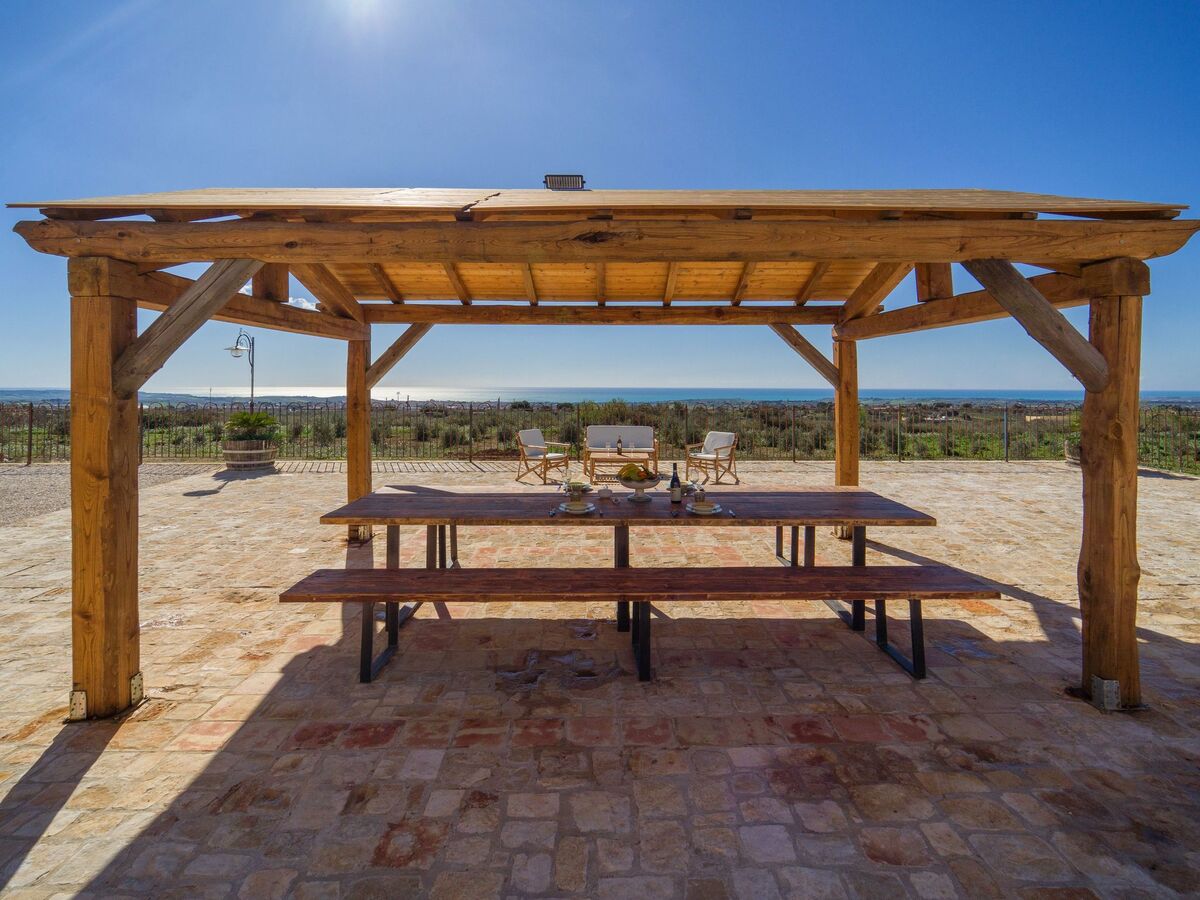 The house has an outdoor area with a heated swimming pool, a jacuzzi and a terrace overlooking the countryside and the sea of Menfi.