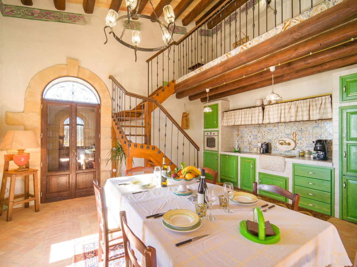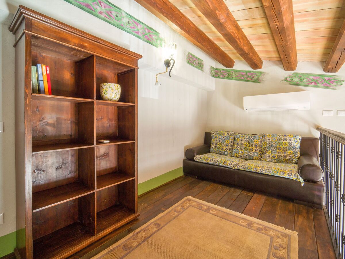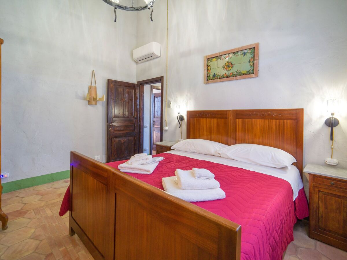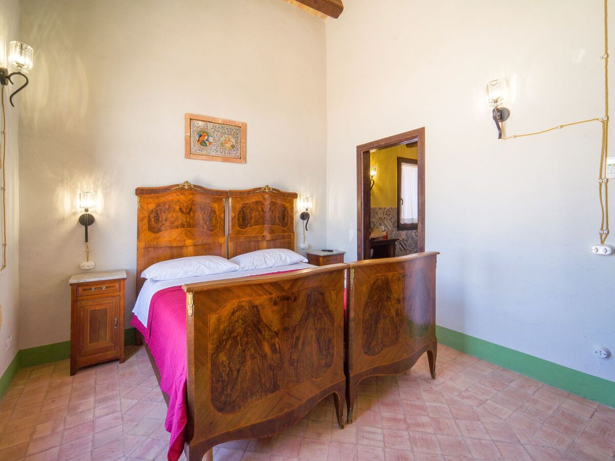 Inside, the house is on two levels: on the ground floor we have two bedrooms both with en-suite, another service bathroom and a beautiful Sicilian-style kitchen and an elegant living room with fireplace.