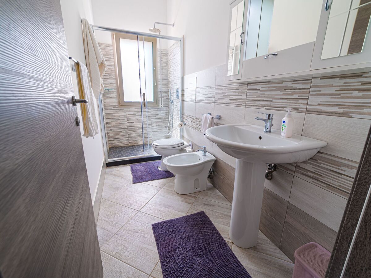 Mamma Antonella is on one level where there is a large living room, a modern and well-equipped kitchen, 2 double bedrooms with bathroom, a twin bedroom and another bathroom.