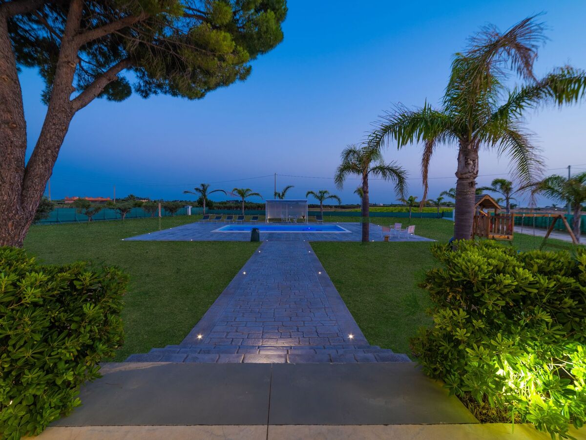 The villa extends over a 3000 square metre garden and is located in the countryside of Menfi, the city of wine.