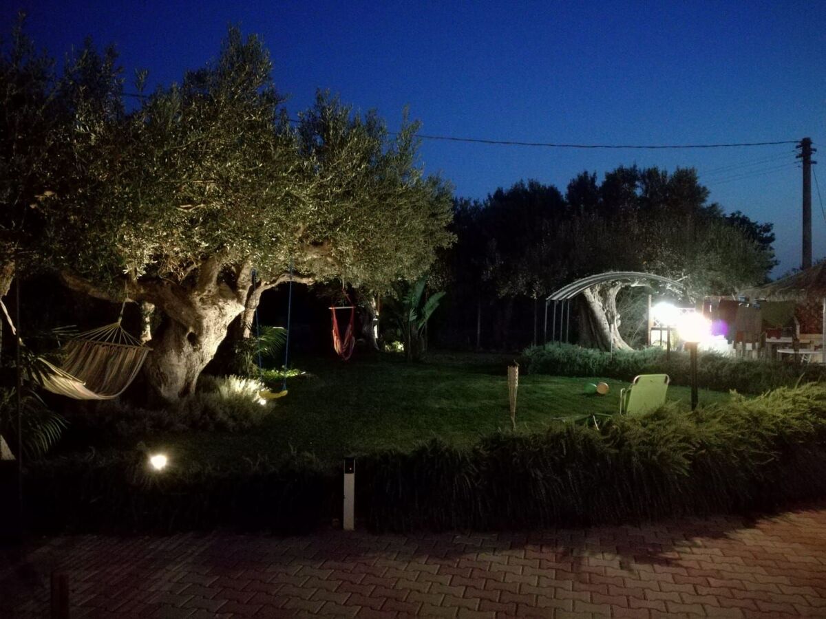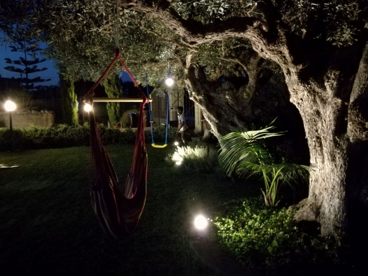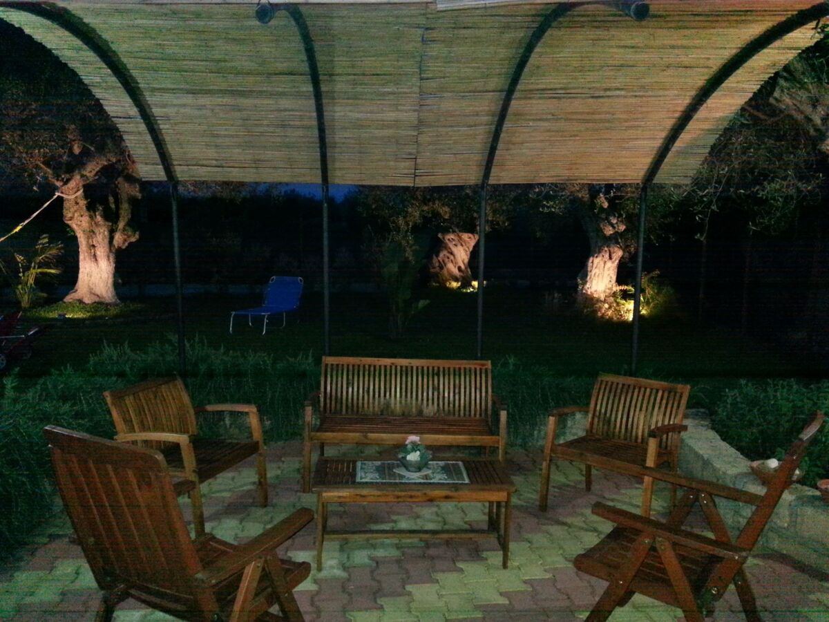 Surrounded by the typical vegetation of the place, it lies on a beautiful plain with a swimming pool, green lawn and an organic vegetable garden where austere and majestic centuries-old olive trees stand, which, with their evocative and harmonious shape, seem to be the natural guardians of so much wonder.