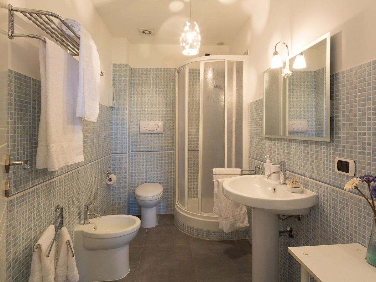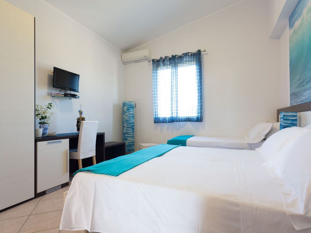La chambre bleue est une chambre triple avec un lit double et un lit simple supplémentaire.