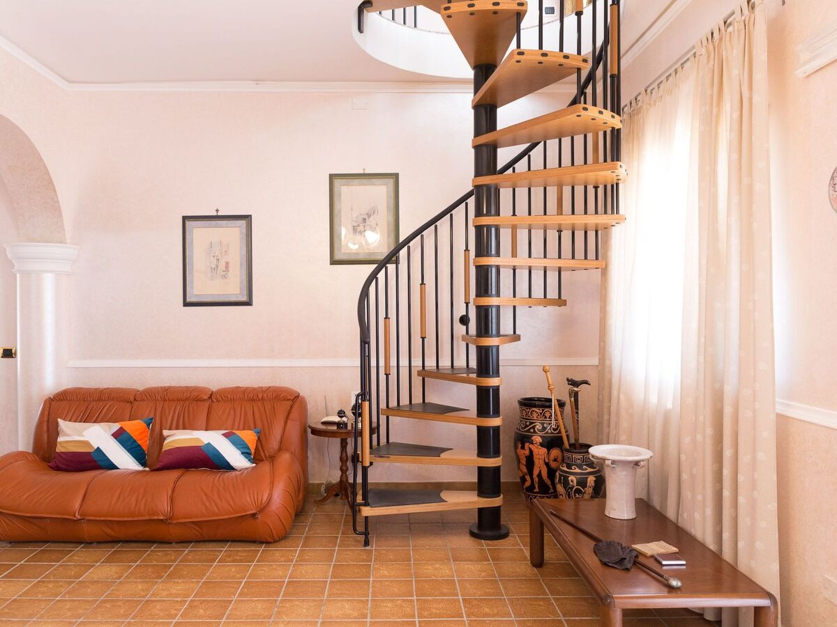 Depuis le salon, un escalier en colimaçon mène au premier étage (également accessible depuis l'extérieur par un escalier) qui bénéficie d'une belle terrasse meublée avec vue sur la mer.