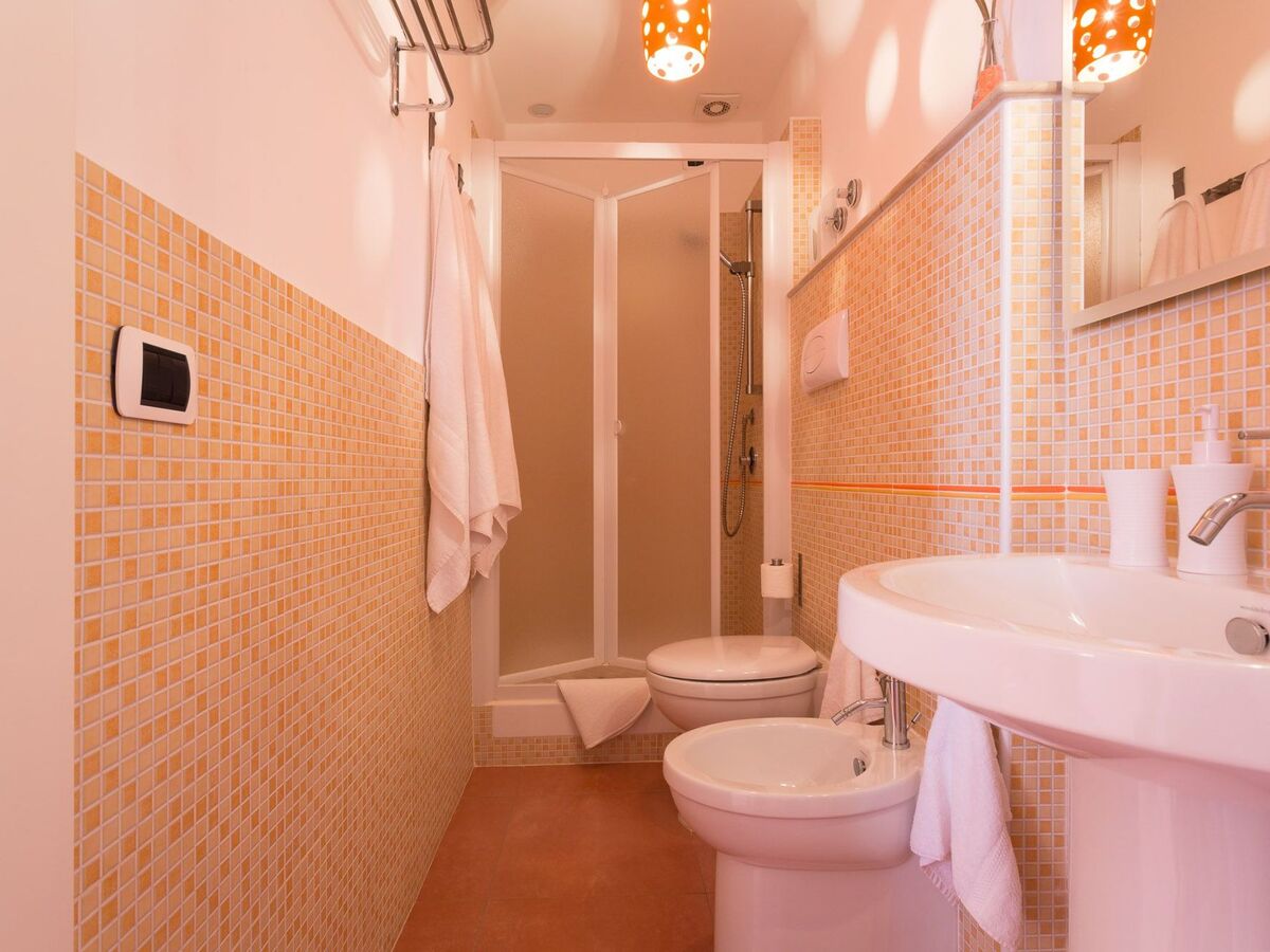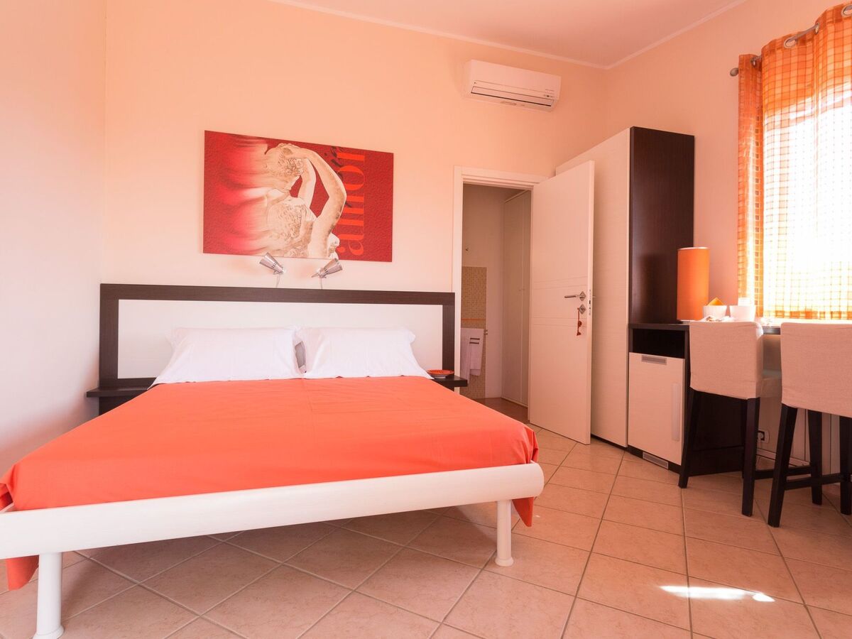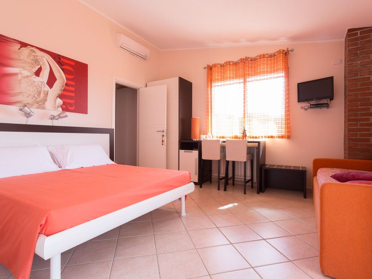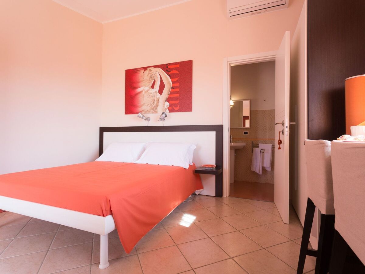 La chambre orange dispose également d'une entrée séparée et donne sur la terrasse meublée.