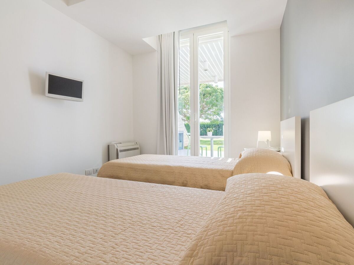 Une chambre double donne sur le jardin et dispose d'une télévision et d'un dressing.