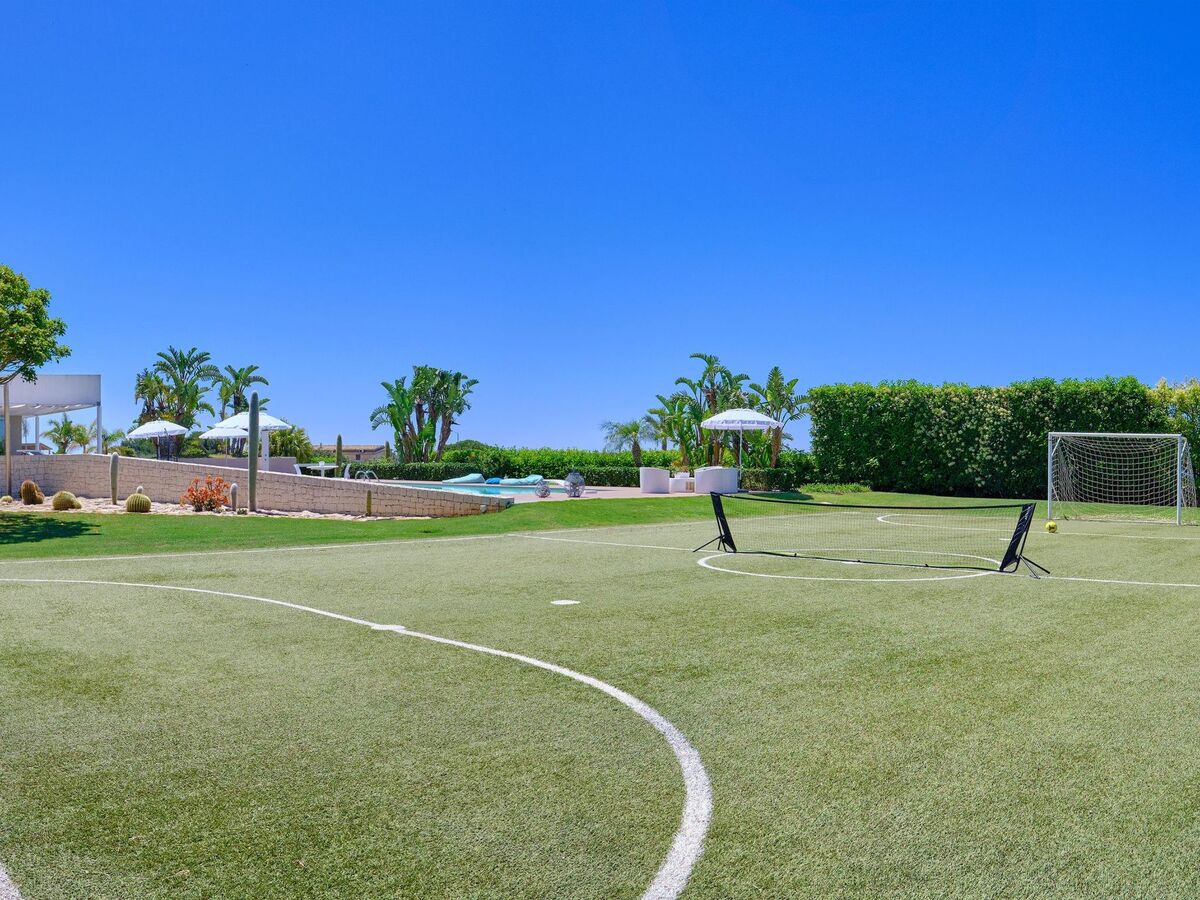 Elle propose une grande piscine privée avec coin jacuzzi un solarium équipé de chaises longues, de parasols, de chaises longues et d'une douche extérieure.